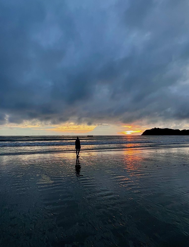 Melina, die ich über eine Facebook Gruppe kennen gelernt habe und mit der ich hier ein Zimmer teile, wünscht sich was anderes zum Frühstück, das gibt es dann ab morgen. Tagsüber ist auf alle Fälle Strand angesagt, herrliche Pazifikwellen laden zum Baden ein und Surfer der Schule neben an versuchen sich mit den Wellen. Ansonsten bietet das kleine Örtchen entspannte Lokalitäten und kleine Geschäfte, mal was essen, mal ein Cocktail, eine schöne Zeit haben mit Melina und Laura, die für längere Zeit hier in Costa Rica ist und auch zu unserem generationsübergreifenden Dreier-Reiseteam gehört. Wir haben jedenfalls unseren Spaß und genießen – Pura Vida eben😎 Und die Sonnenuntergänge sind auch ganz hübsch🌄