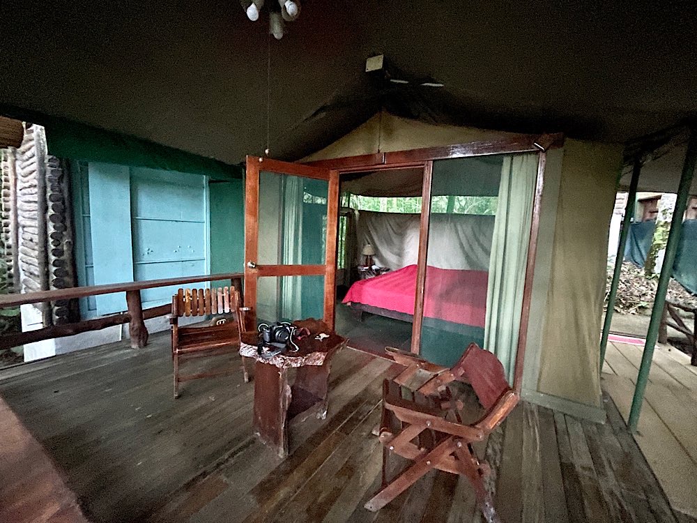 Weiter ging dann auch die Plackerei auf den angeblich 19km, die dann aber doch knapp 30 wurden: Wäre mir nicht klar gewesen, dass Jammern und Aufgeben keine Option ist, hätte ich vermutlich genau das gemacht. Als dann auch noch kurz vor Einbruch der Dunkelheit der Guide lustig einen Weg im Wald suchte, um den Fluss kurz vor der Ranger Station zu überqueren und das mit meiner Maps.Me-App gar nicht zusammen passte, wurde ich doch etwas unwillig und nervös.Kürzen wir das ganze hier mal ab, um 18:00 Uhr waren wir schließlich am Ziel, völlig fertig, ich wollte nur noch duschen und schlafen, aber das ging auch nicht so richtig, alles tat weh. Schließlich dann duschen, essen, Bett. Um 20:00 Uhr geht das Licht am Schlafsaal aus. 70 Betten gäbe es, wegen Corona sind es nur 35 – 20 davon waren belegt, alle mit Mückennetzen und Laken gut ausgestattet.
