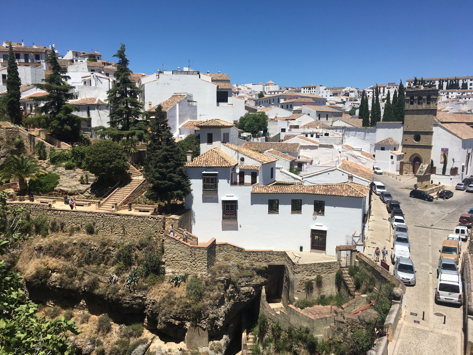 Es hatte sich inzwischen zugezogen und auf dem Rückweg wäre ich beinahe ordentlich nass geworden, wenn da nicht gerade eine Bar am Wegesrand aufgetaucht wäre. Ich wurde freundlich eingeladen, oben Platz zu nehmen und den Regen abzuwarten – einen Kaffee gab es auch noch dazu und eine deutsche Familie tauchte auf, mit der ich ein wenig geplaudert habe. Viel Kontakt also heute, passiert irgendwie einfacher, wenn man alleine unterwegs ist.