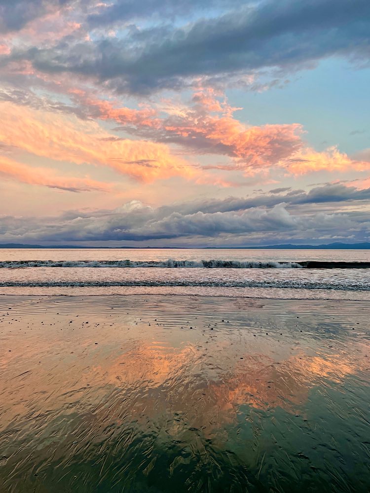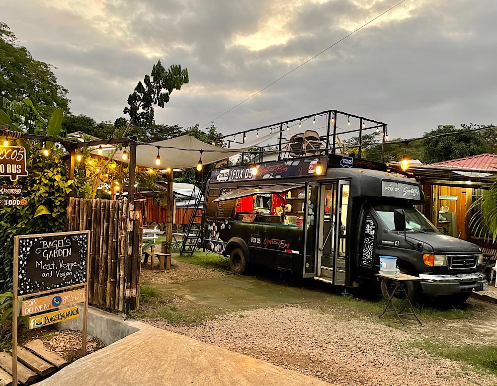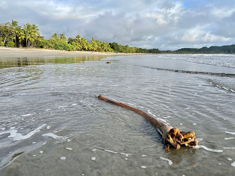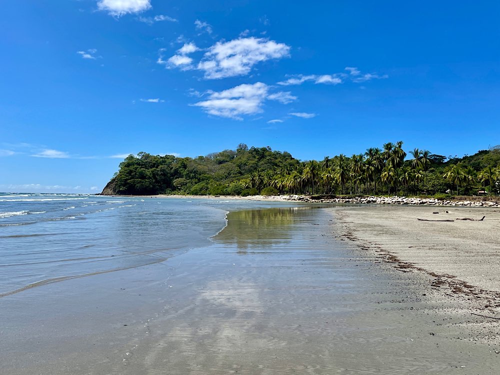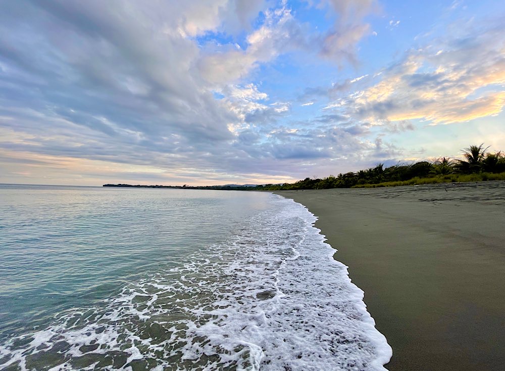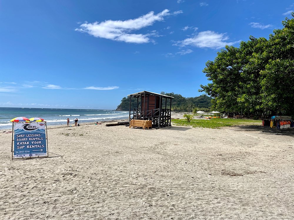Melina, die ich über eine Facebook Gruppe kennen gelernt habe und mit der ich hier ein Zimmer teile, wünscht sich was anderes zum Frühstück, das gibt es dann ab morgen. Tagsüber ist auf alle Fälle Strand angesagt, herrliche Pazifikwellen laden zum Baden ein und Surfer der Schule neben an versuchen sich mit den Wellen. Ansonsten bietet das kleine Örtchen entspannte Lokalitäten und kleine Geschäfte, mal was essen, mal ein Cocktail, eine schöne Zeit haben mit Melina und Laura, die für längere Zeit hier in Costa Rica ist und auch zu unserem generationsübergreifenden Dreier-Reiseteam gehört. Wir haben jedenfalls unseren Spaß und genießen – Pura Vida eben😎 Und die Sonnenuntergänge sind auch ganz hübsch🌄
