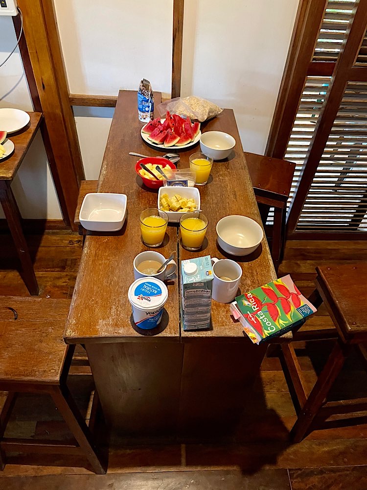 Frühstück gibt es am Strand, immer wieder Gallo Pinto, ich mag es noch. 😋
