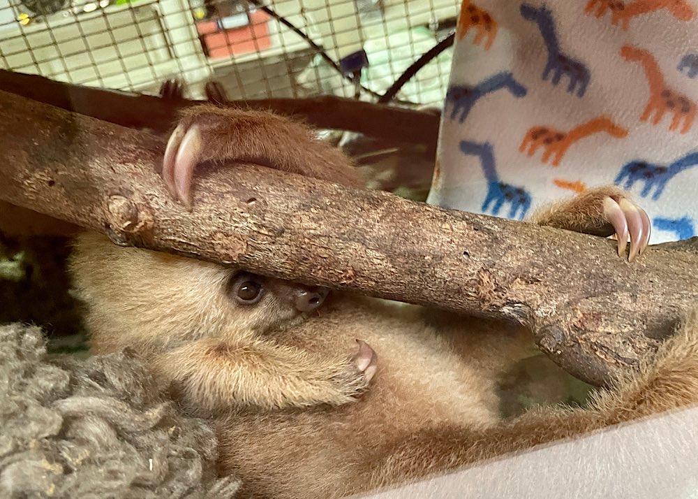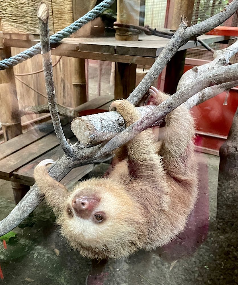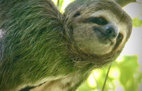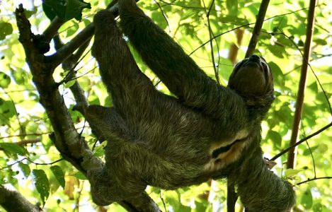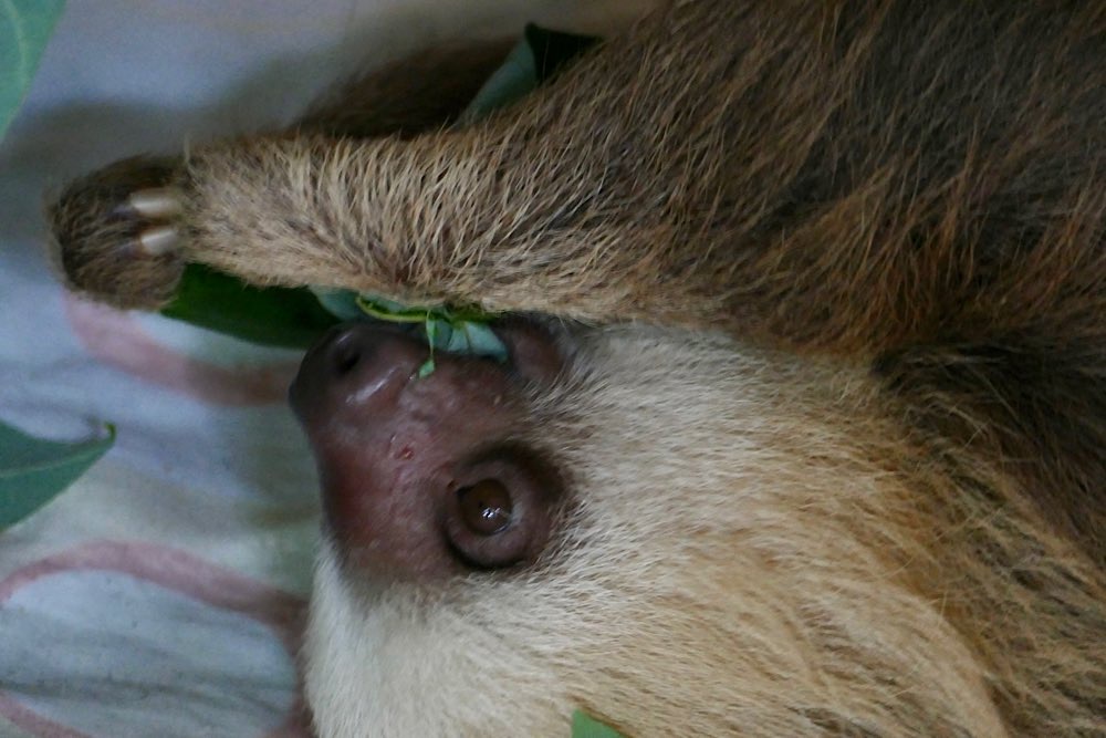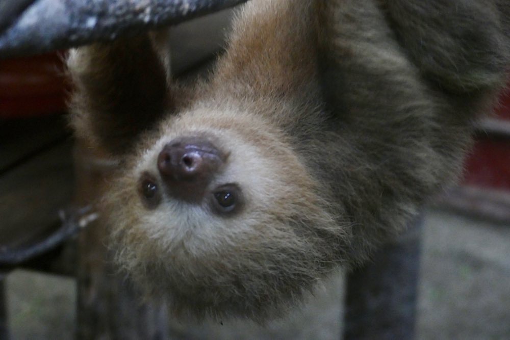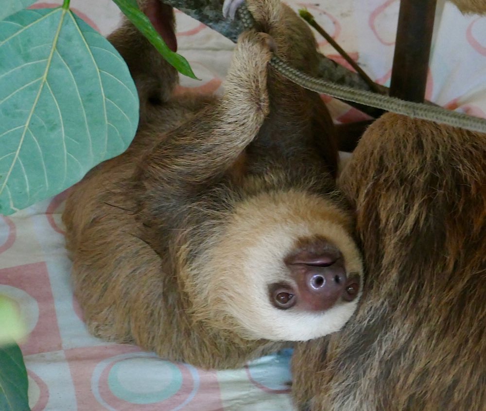 Strand gegenüber des Jaguar Rescue Centers Faultiere lernen, welche Blätter sie essen können und welche eben nicht Ihm mangelt es an sozialer Kompetenz, da er 19 Jahre in einer Garage eingesperrt lebte