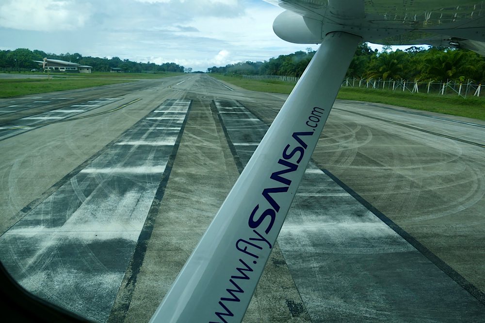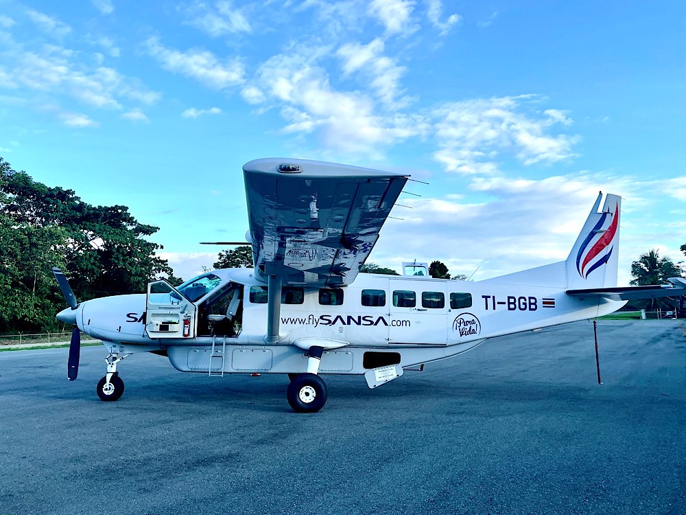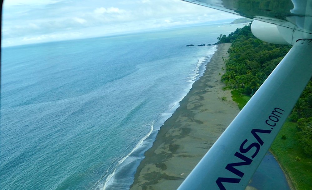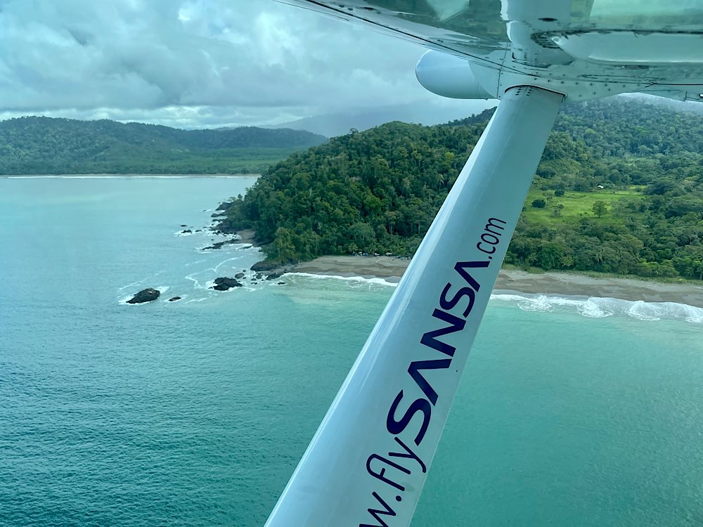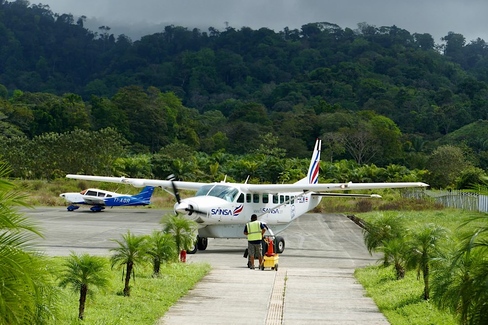 Zum Sitz muss man sich ein bisschen vorschieben und vorkriechen, ist doch eher eng so eine Cessna. Bordansagen gibt es auch, kurz vorm Abflug eine kleine Info auf Spanisch. 35 Minuten Flug werden erwartet. Dann geben Pilot und Copilot das Okay zum Abflug. Der Propeller läuft hoch, es wird laut und wackelt ein wenig und dann heben wir ab. Wunderschöne Aussichten über die Küstenregion der Osa-Halbinsel und dann die Pazifikküste entlang. Ein paar Wolken zwischendrin und insgesamt ein ruhiger Flug. Die Landung ist etwas härter als im großen Flieger. Nach 5 Minuten ist man dafür aber auch schon raus aus dem Flughafen. Einmal runter vom Rollfeld, Gepäck schnappen und fertig, viel besser als einen ganzen Tag lang im Bus zu sitzen!