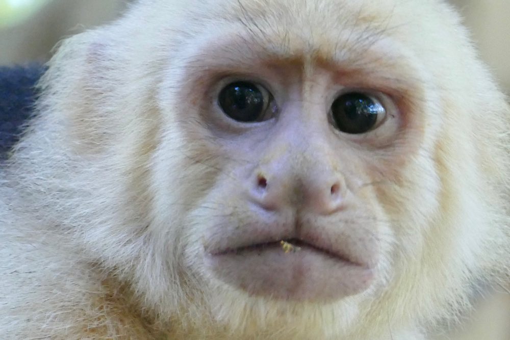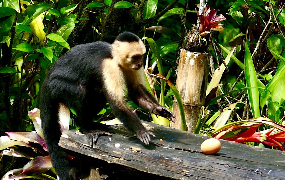 Casa Aleman Kapuzineräffchen – gierig – klauen auch gern mal Lebensmittel Zwei Affen 🐒 🐒-aber nur ein 🥚 ..und die Beute schnell sichern leider leer ausgegangen ordentlich ausgeleckt Mono Congos