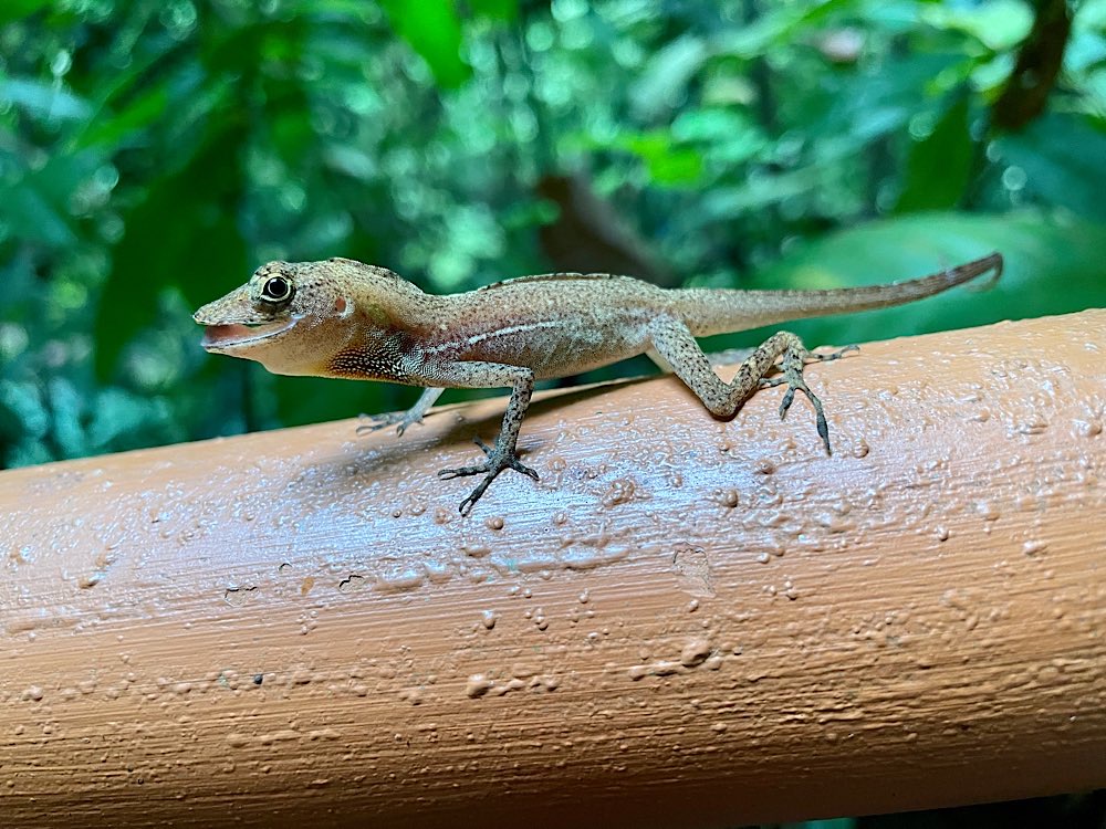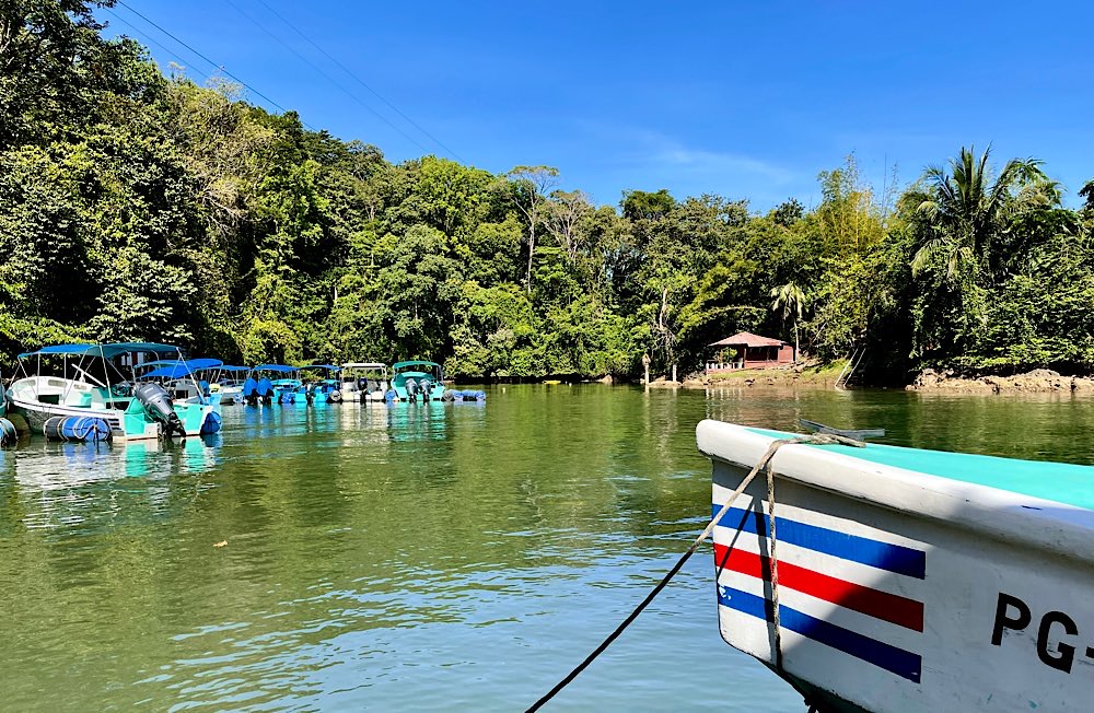 Vom Zeltcamp aus ging es dann heute Früh weiter mit dem Van und dem Boot nach Tortuguero, einem kleinen Ort an der Karibikküste, der nur mit dem Boot erreichbar ist. Die Fahrt mit dem Boot über Flussläufe war ein Genuss mit viel Naturbeobachtung: kleine Krokodile, Vögel, Iguanas 🦎 . Mit dem Wetter hatten wir auch Glück. Eigentlich regnet es ständig, wir sind schließlich im Regenwald. Heute aber mal nicht😀☀️😎