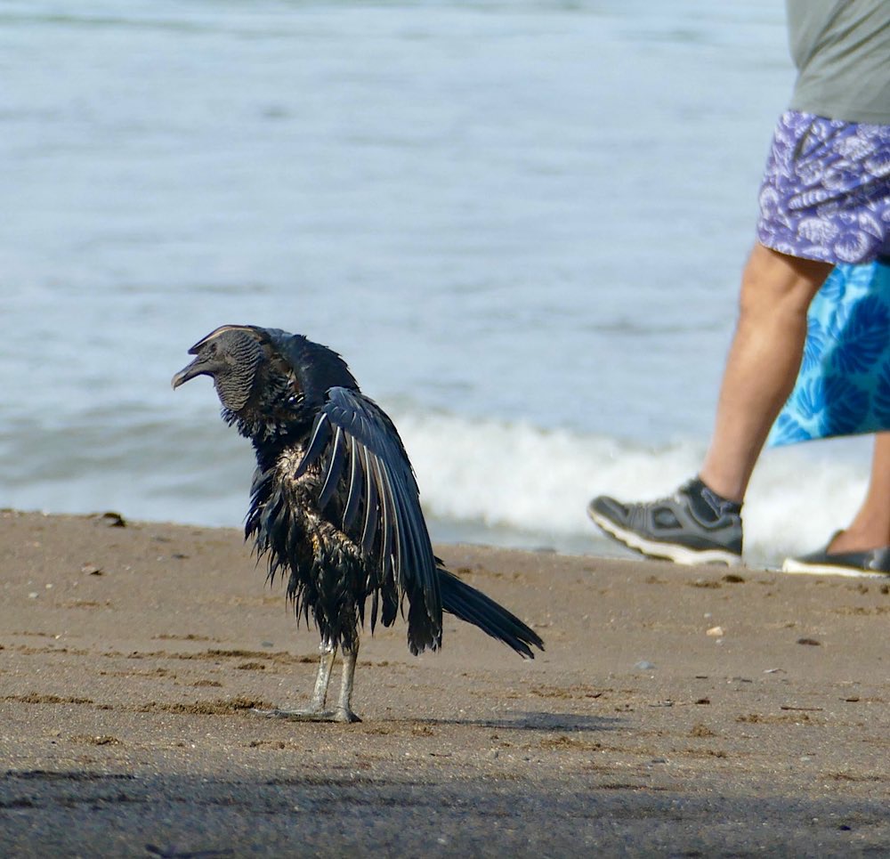 Weihnachten am Strand – Familie mit Hängematte und Holzliege Bahia Drake – „muy basico“ Rabengeier im Garten vor meinem Hotel