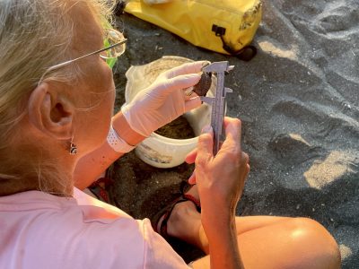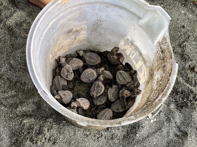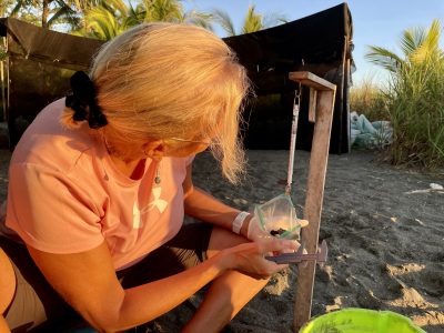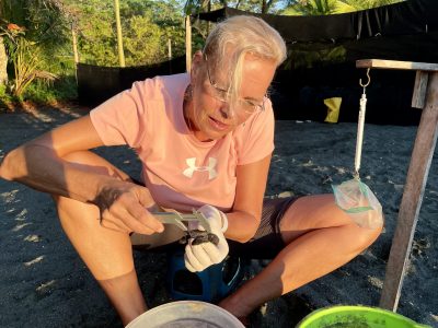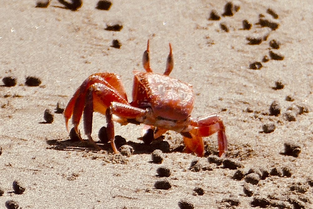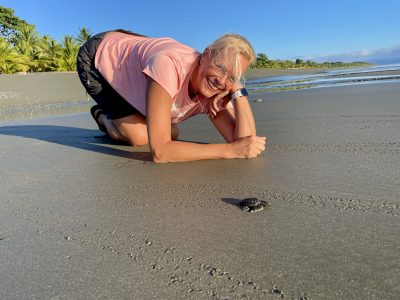 Wir hatten Glück, offensichtlich hatte den Schildkröten jemand Bescheid gesagt – zumindest den schlüpfenden Babys. Nach einer knappen Stunde ruckeliger Fahrt über enge und holprige Straßen im Dunklen erreichten wir den Schildkrötenstrand und wurden von unserem Guide Alexis instruiert. Kein weißes Licht – nur rotes, um die Schildkröten nicht zu verschrecken. Nur von hinten nähern, Umsicht und Vorsicht sowieso. Schon der Anblick der ersten winzigen Tortuga war berzerwärmend. Bald darauf dann das erste Nest – einfach sehr bewegend dem Gewimmel zuzusehen, das sich aus ca 30 cm Tiefe befreit und dann Richtung Meer stratzt, etwa 100 Tiere pro Nest – nur ca 1% überlebt mittelfristig.