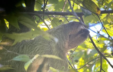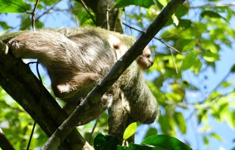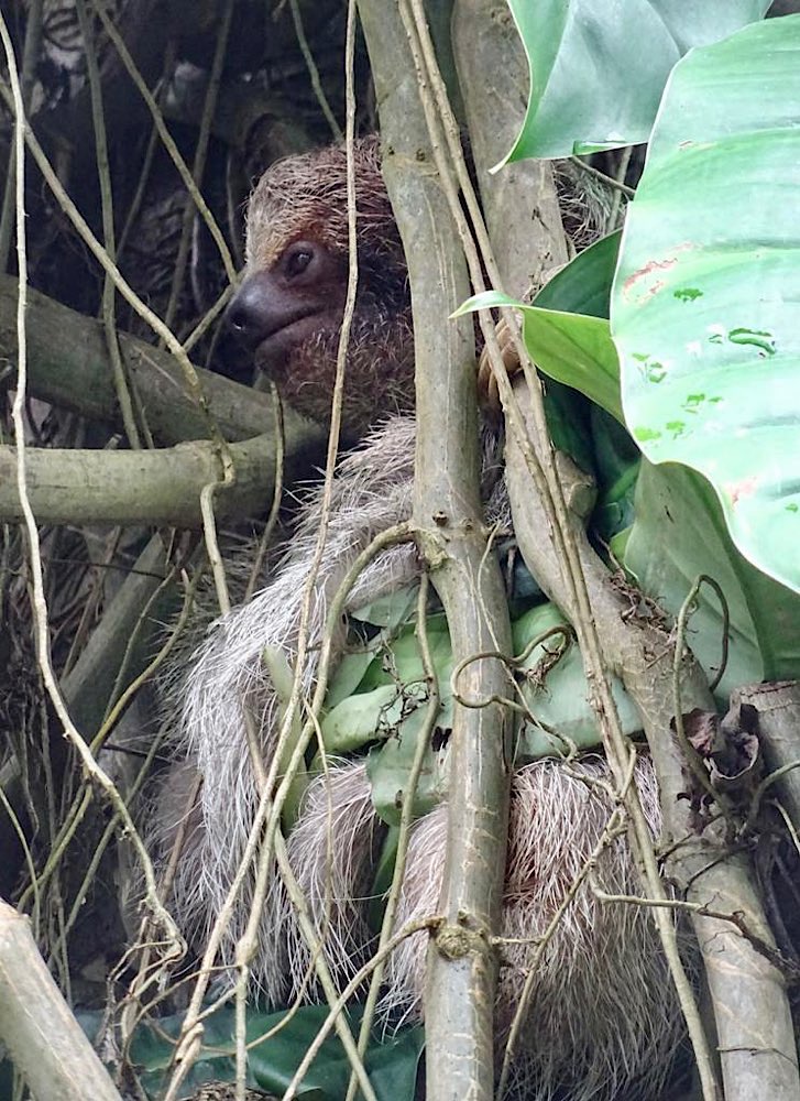 Die Faultiere waren zunächst faul und zeigten sich nicht. Am Ende der geführten Tour, fragte unser Guide, ob alle noch weiter im Park bleiben wollten – viele wollten den Strand genießen – oder ob jemand noch mehr Faultiere sehen wollte, falls welche auftauchen auf seinem Weg zum Ausgang. Ich war die einzige, die das wollte und es hat sich absolut gelohnt! Wir hatten ziemlich gute Sicht auf ein männliches Faultier, das gar nicht so faul war und von den 40m, die es am Tag zurücklegt, in unserer Gegenwart bestimmt sechs oder sieben absolvierte. Unser Guide machte auch einige Aufnahmen, zum Beispiel die Videos, mit meinem Handy durch das Teleskop. Ich hatte schließlich Nackenschmerzen, da das Viech oben im Baum sitzt und das Fotografieren irgendwann auch körperlich anstrengend wurde. Aber es macht schon echt Spaß, wenn dann doch mal ein Foto gelingt und man den faulen Wesen ins Auge sehen kann.