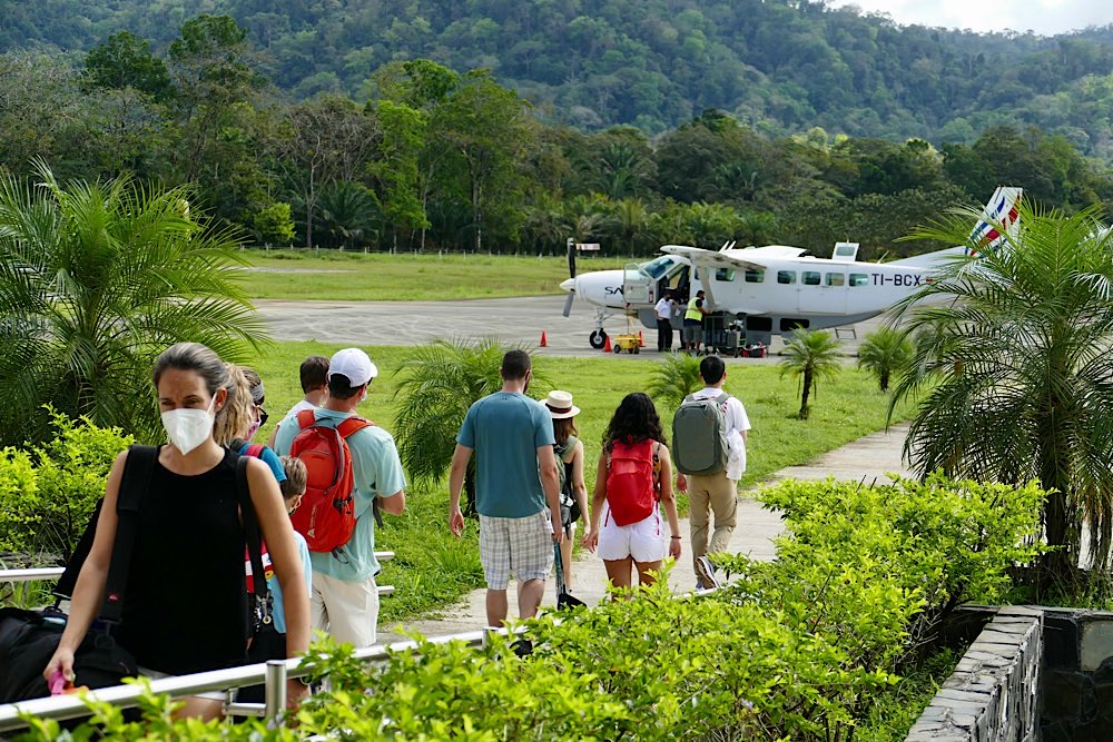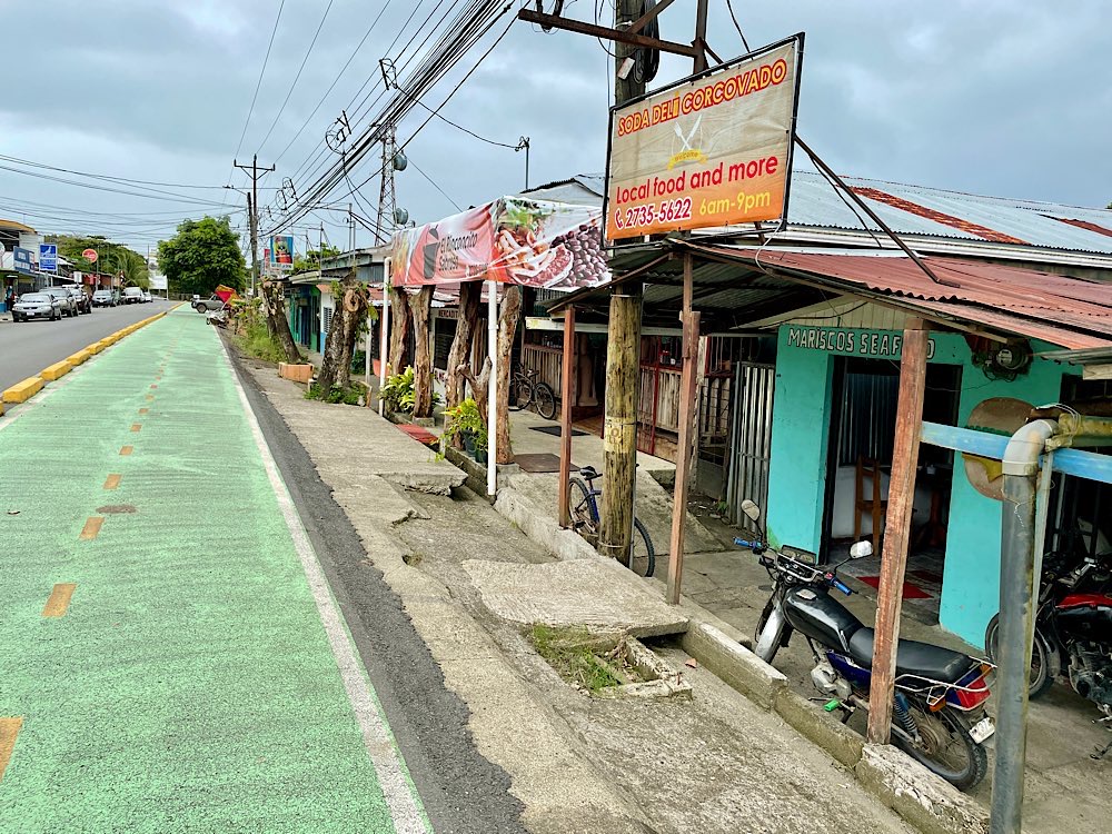 mit dem Rad auf der Rollbahn😎 Airport😀 Piña – lecker Puerto Jiménez Eine knappe Stunde bis San José – sehr verlockend 🧐 😉