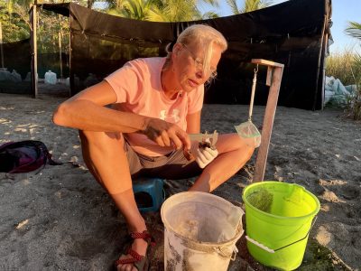 Gestern Morgen um 5:45 Uhr war ich jedenfalls pünktlich zum Sonnenaufgang an der Schildkrötenstation und durfte beim Vermessen und Wiegen der kleinen Wesen (tortuga lora) helfen. Die meisten Panzer sind etwa 40 mm lang, 35 bis 40 mm breit und die Tiere wiegen meist so zwischen 16 und 18 Gramm. Die Daten werden gesammelt und gehen dann an eine Universität zwecks Auswertung. Die Regierung hier unterstützt diverse Schildkrötenprogramme. Die Populationen verzeichnen teilweise auch deutlichen Wachstum, die Programme sind also erfolgreich. Nach der Vermessung gab es einen kleinen Vortrag über die Arbeit an der Station, alles auf Spanisch natürlich, und danach durfte ich einen der beiden Eimer an die Wasserkante tragen und ihn dort kippen, sodass wir die kleinen Tortugas auf ihrem Weg in die Freiheit wunderbar beobachten konnten. Ein sehr erhebendes Erlebnis!