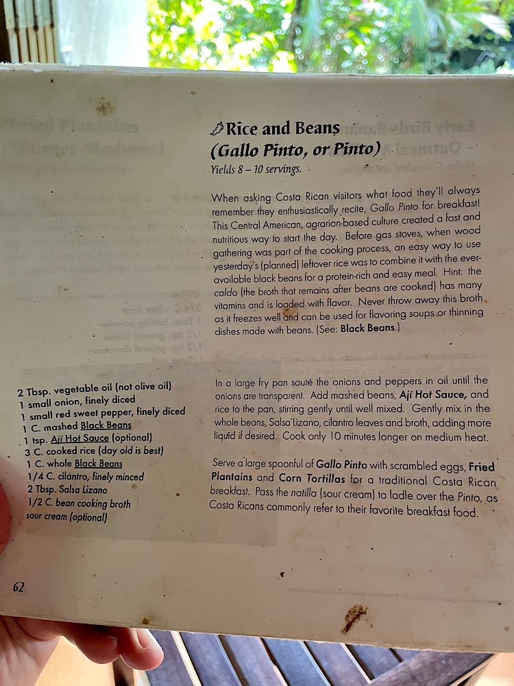 Frühstück im Hotel war gut, gleich eine Spezialität des Landes kennen gelernt, Gallo Pinto: Reis mit schwarzen Bohnen, Spiegelei mit Koriander, Baguette, Würstchen, Koch Bananen, ein traditionelles Frühstück der Region, gibt es bestimmt morgen auch wieder für mich 😋