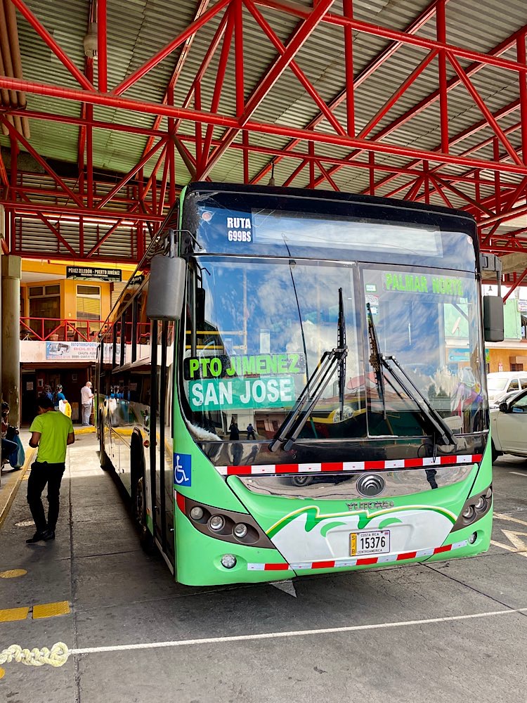 Irgendwann musste unser entspanntes generationsübergreifendes WG-Projekt zwischen Brandung, Dschungel und nächtlichem Affengeheul ja auch mal ein Ende finden – also trennten sich vorgestern unsere Wege – Laura zog es nur ein kleines Stückchen weiter zum Spanischlernen an die Perfect Sunset School, für Melina ging es heimwärts. Nach San José – Verkehrsknotenpunkt des Landes – reisten wir noch gemeinsam – erst mit dem Taxi, dann der Bus, Fähre, Taxi und wieder ein Bus. Reisen mit öffentlichen Verkehrsmitteln sind wegen Covid in Zahl und Zuverlässigkeit eingeschränkt – zuverlässige Infos zu finden, erfordert ein wenig Recherche – im Netz, mit Menschen vor Ort – irgendwie finden sich aber immer Wege, das Ziel zu erreichen- nur reichlich Zeit muss man einplanen.