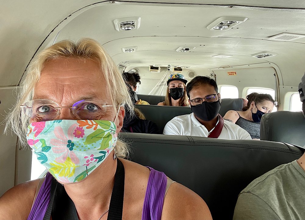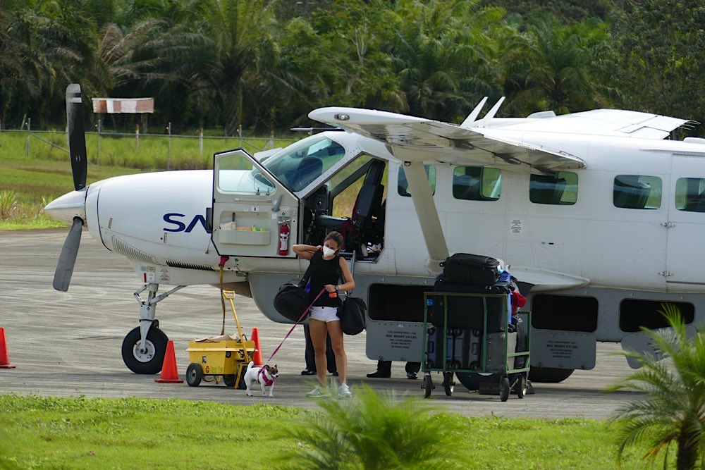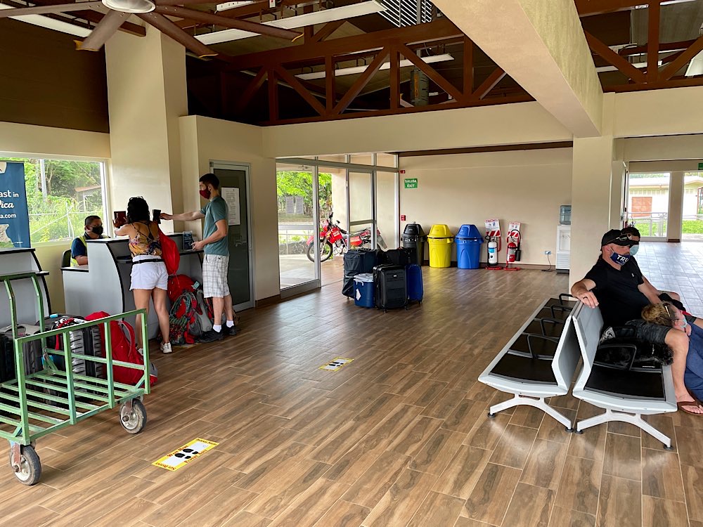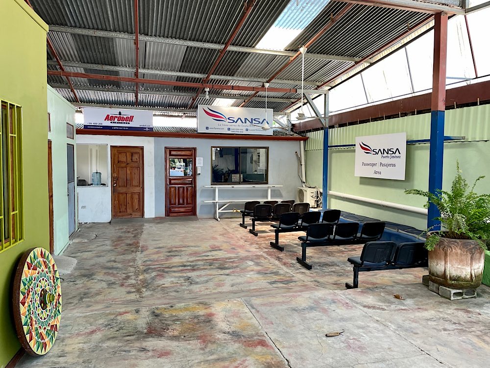 Aufregend und wunderschön war er, der Flug von Drake nach San José. Um 7:30 Uhr kamen John und Katia mit dem Taxi vorbei und holten mich ab. Über eine HuckelPiste und durch einen breiten Fluss ging es zum Flughafen. Im Vergleich zu Puerto Jiménez fand ich ihn recht groß und modern, aber seht selbst…. Beim Check-in wird alles gewogen, Person mit Handgepäck muss auf die Waage, der Rucksack natürlich auch. Alles klein und sehr entspannt. Dann wurde ich noch mal an den Schalter gerufen. Ob ich einen Flug eine Stunde später nehmen könne, sonst müssten Sie eine amerikanische Familie trennen. Deren Flug war offensichtlich aus irgendwelchen Gründen gecancelt worden. Habe ich mich drauf eingelassen und drum gebeten, dass ich einen Platz vorne auf der rechten Seite bekommen könnte. Ich durfte dann auch als erste einsteigen und mir den besten noch verbleibenden Platz aussuchen, einige Passagiere waren schon im Flugzeug, vermutlich aus Puerto Jiménez, gefragt hab ich aber nicht.