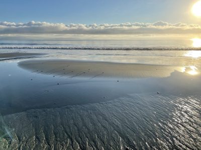 Bei Ankunft gestern war es dunkel – also schaute ich heut früh erstmal, wo ich bin – zum Strand zu laufen dauert ein bis zwei Minuten und es ist traumhaft – weitläufiger mit gleichmäßiger Brandung. Heut nach der Arbeit fragte ich nach einem Fahrrad, um in den Ort zu fahren und zu gucken, wo ich so gelandet bin. Fahrräder sind hier anders – ein Gang, keine Bremse am Lenker, nur Rücktritt und durch die salzige Luft rostempfänglich. Ich kam trotzdem an – 30 Minuten gemächlich über die dirt road mir teils riesigen Pfützen.