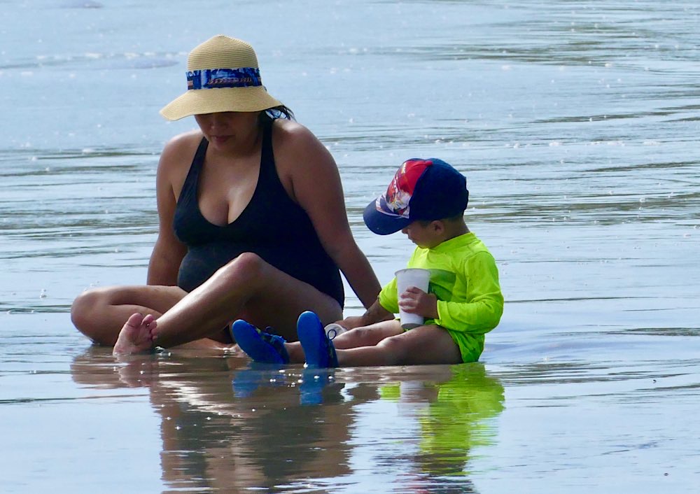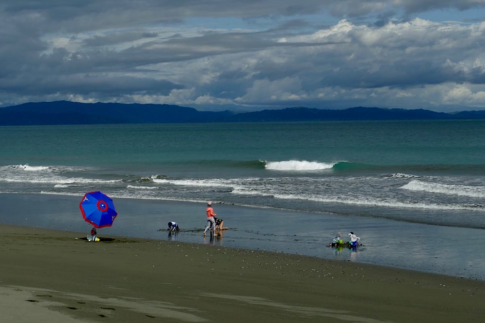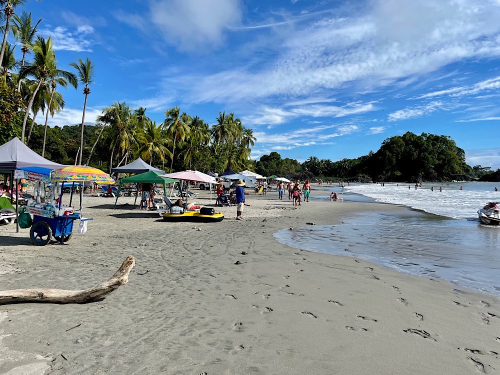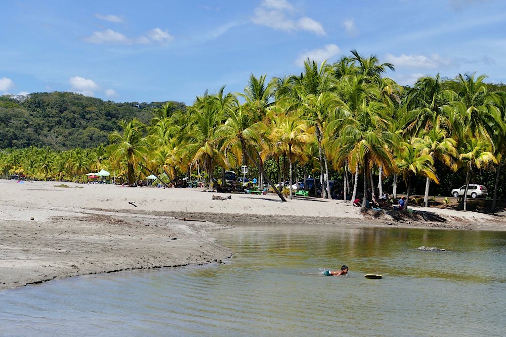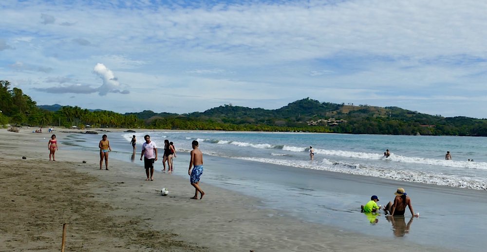 Mittags kamen wir im Hotel an und zunächst ging es an den Ortsstrand. Ich war geschockt: alles voll mit Menschen und Liegen, wie im Sommer an der Ostsee. Das kannte ich gar nicht, auf der Osahalbinsel ist immer alles sehr entspannt gewesen und voll bedeutete, dass irgendwo zehn Leute rumturnen. Na gut, ist eben so, hier sind Ferien und die Costaricaner nutzen auch das verlängerte Wochenende über den Jahreswechsel zum Urlaub machen.