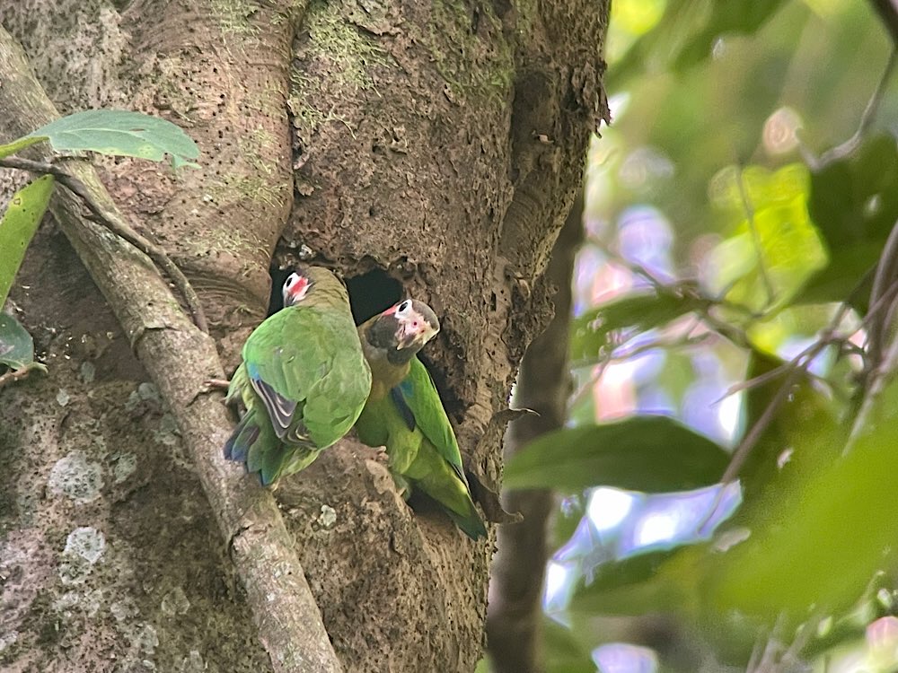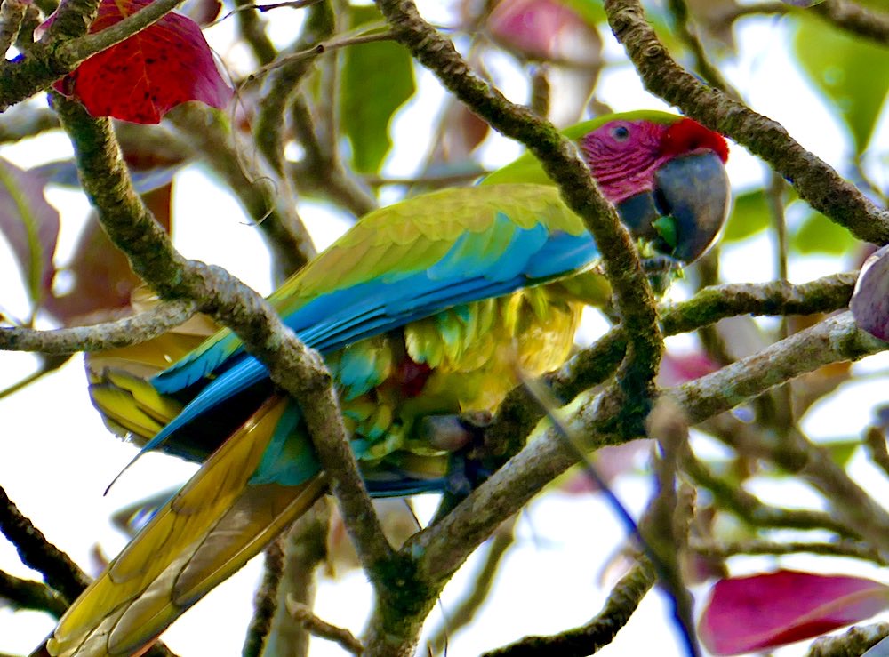 Auf dem Rückweg traf ich an der Playa Cocalito nach auf Nawit, einen thailändischen Studenten der UN, der mit einem Stipendium seit sechs Monaten im Land ist. Wir haben ein bisschen geplaudert und gemeinsam dann noch versucht, die Aras zu fotografieren, die über uns im Mandelbaum saßen.