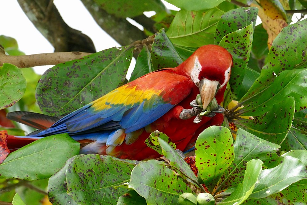 Zwei Tage noch im Paradies, dann heißt es Abschied nehmen und es geht weiter. Neben regelmäßiger Arbeit und Besuchen am Strand fand ich immer mal wieder Zeit, mit der Kamera unterwegs zu sein, um zu schauen, was sich mir so bietet. Eigentlich wollte ich immer noch das perfekte Tukan-Bild, nicht so weit weg, mehr Schärfe, klarere Farben. Ich weiß ja wo man hier wen findet: rote Aras lieben den Mandelbaum, Tukane findet man im Papayabaum.