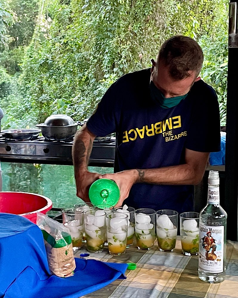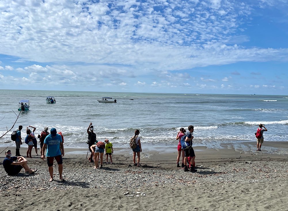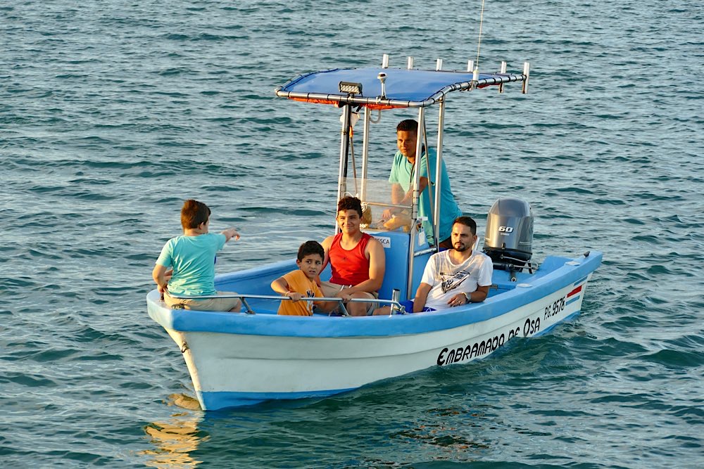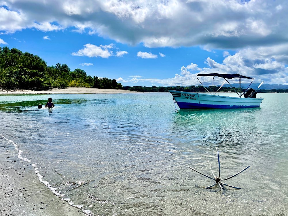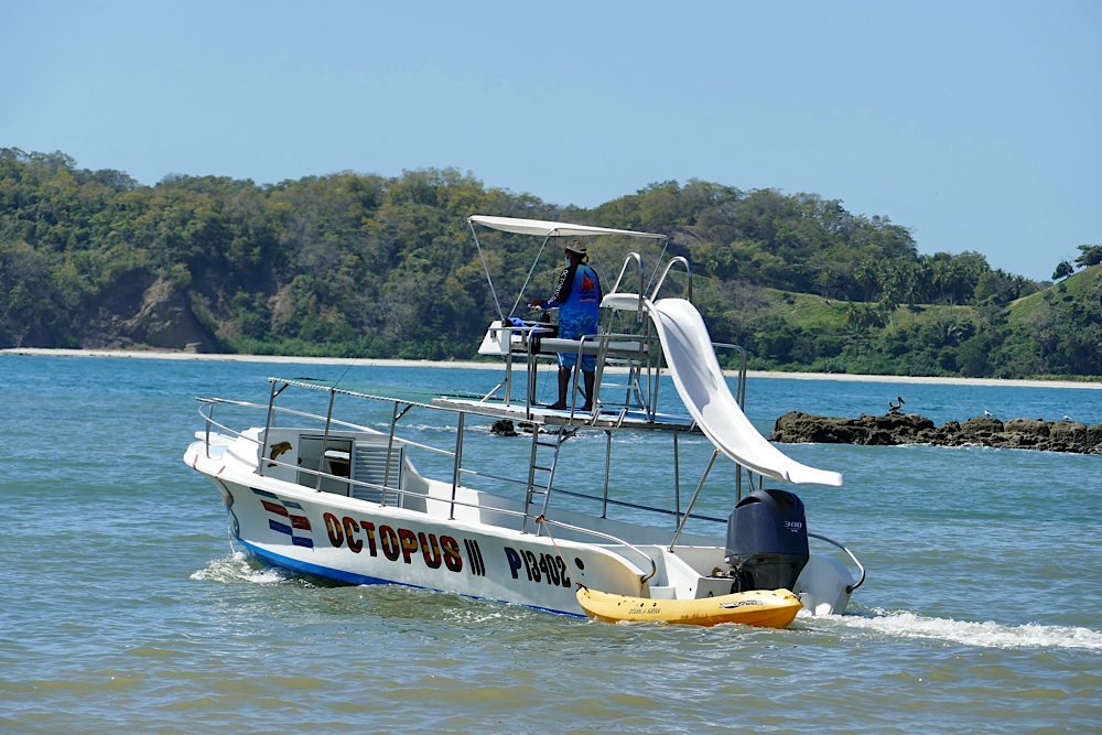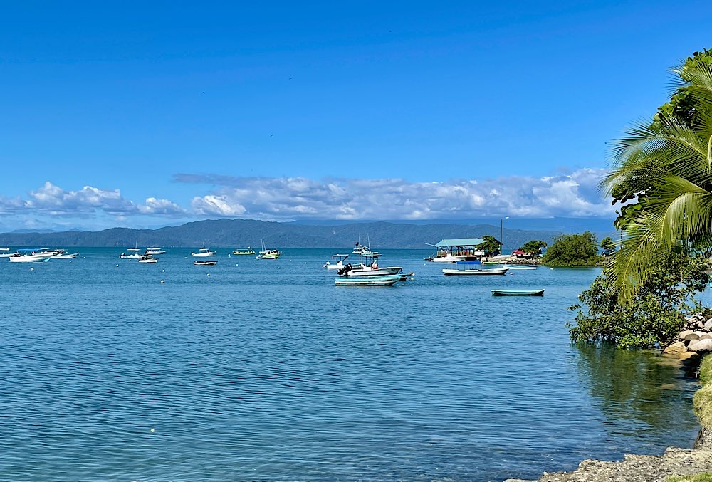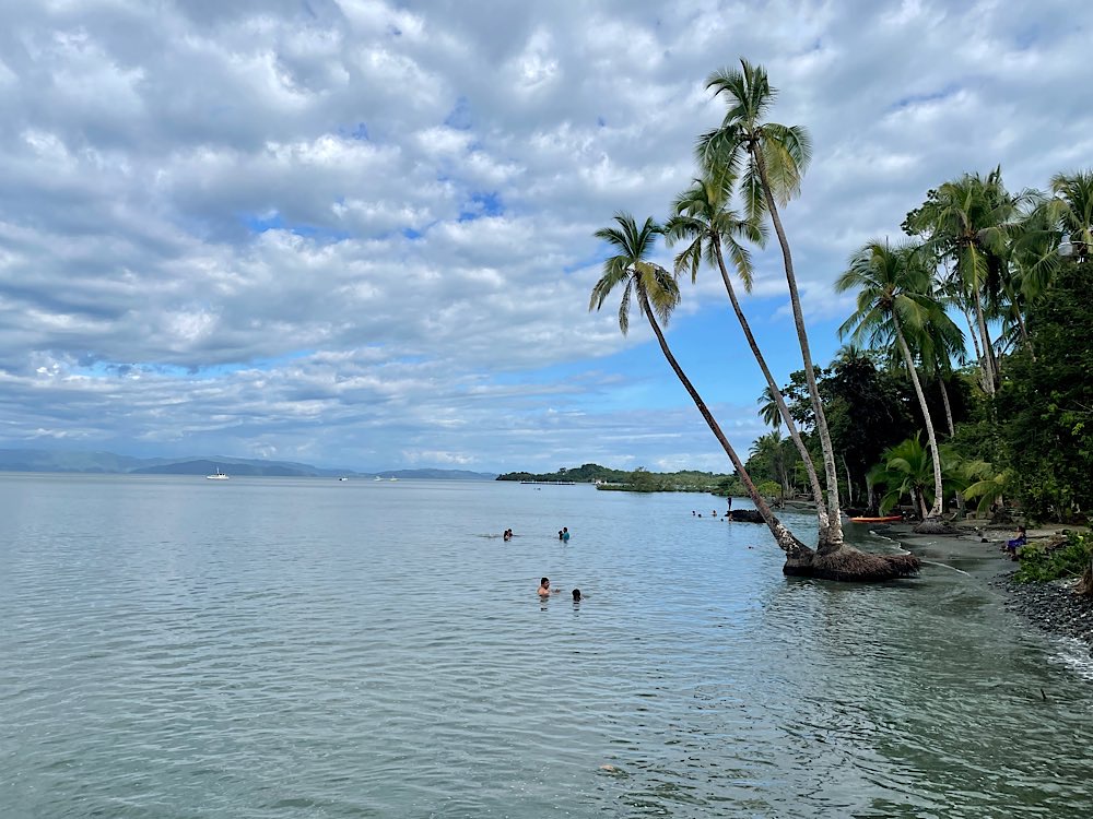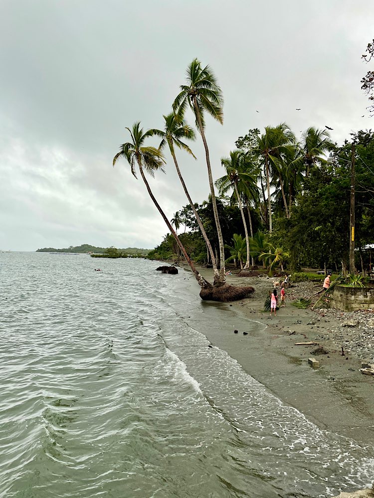 Gestern hatte ich dann einen Schnorchel-Ausflug zur Isla del Caño gebucht. Naja, wer mal im Roten Meer unterwegs war, konnte dem hier nicht so ganz viel abgewinnen, zumal das Meer statt wie normal glasklar deutlich getrübt war, aufgewühlt in den Nächten vor dem Vollmond, sagen die Einheimischen. Ein bisschen seekrank war ich auch, nein, nicht während der Fahrt, im Wasser dann, blöder Wellengang. Einen etwas verplanten Amerikaner hatte es aber schlimmer erwischt, der sah gar nicht mehr fröhlich aus. Egal, auf dem Rückweg gab es dann noch ein Mittagessen in Drake in einem Restaurant am Strand. Wir hatten einen sehr lustigen internationalen Tisch. Jason aus New York, der als TV-writer Soaps für Fox-Business entwickel, John aus Australien, der in Deutschland arbeitet mit seiner Freundin Katia aus Peru. Kennengelernt haben sich die beiden übrigens in Mexiko. Muntere Gespräche auf Englisch und Spanisch und zwischendurch mal ein deutsches „Prost“. Mit Katia und John teile ich mir morgen früh auch das Taxi zum Flughafen – wir haben festgestellt, dass wir den selben Flug gebucht haben. Dann bin ich gespannt auf die Gruppe zur Rundreise, morgen Abend trifft man sich im Hotel. Ob ich dann immer noch regelmäßig Zeit finde, hier was zu schreiben, werden wir sehen. Womöglich gerate ich die letzten drei Wochen hier noch in eine Art Reise-Stress…😅