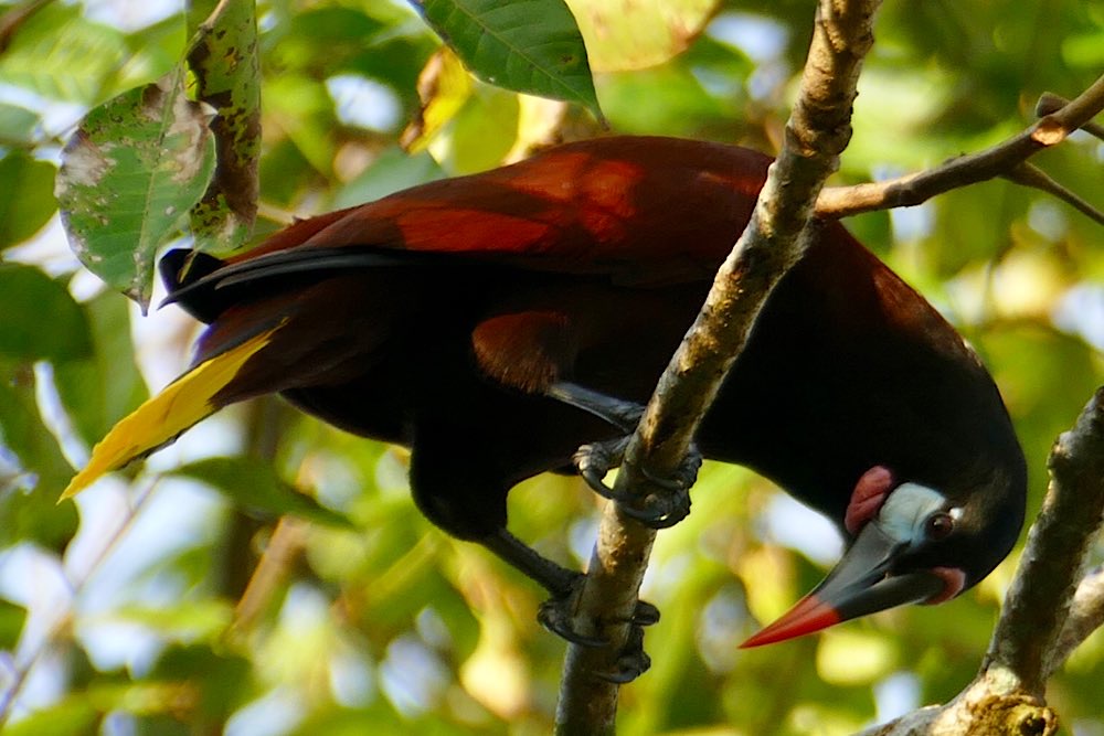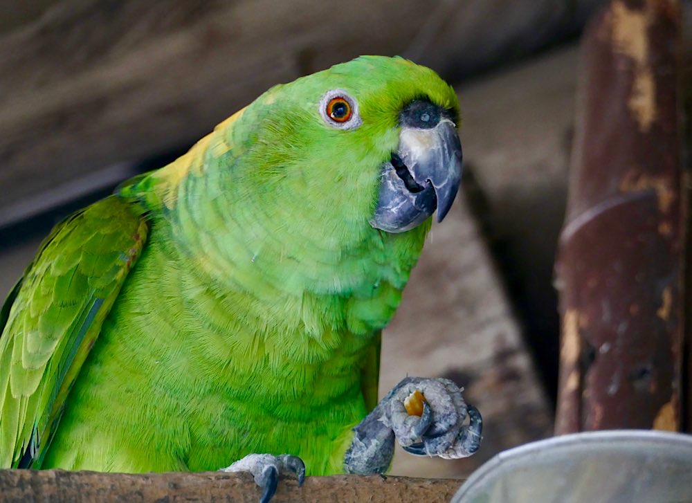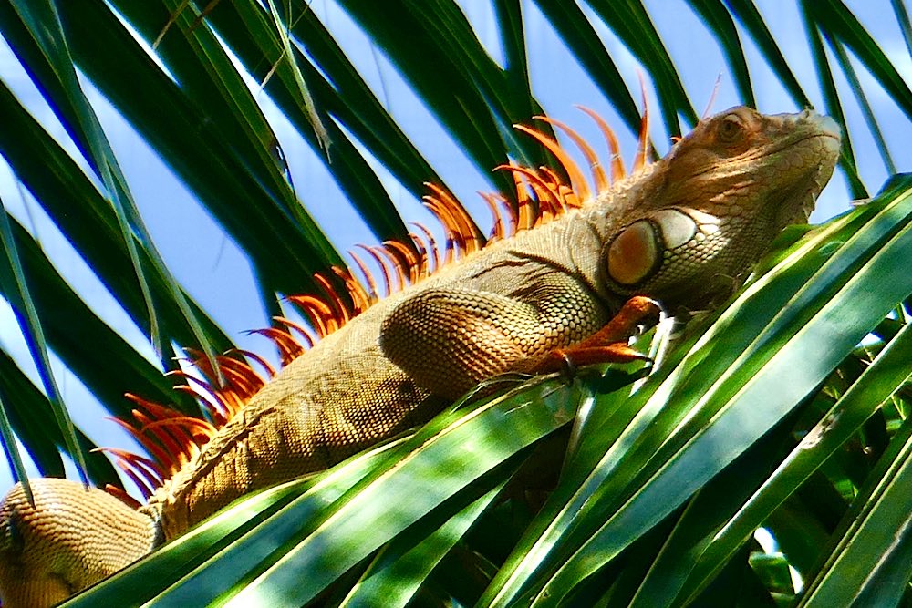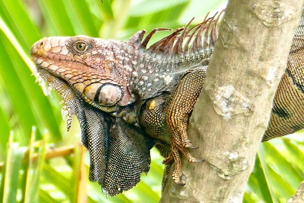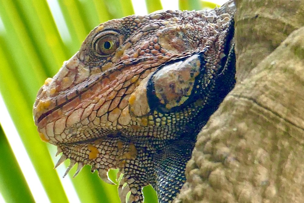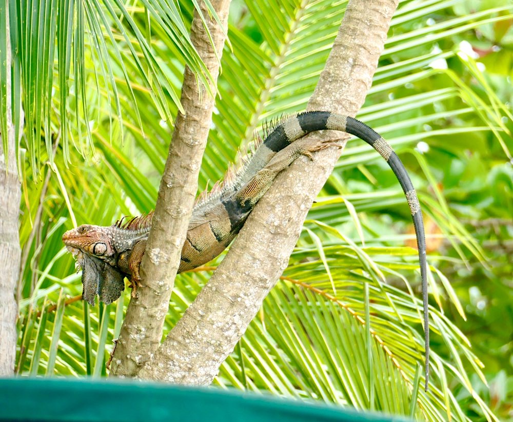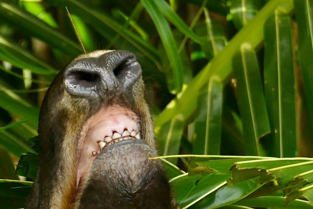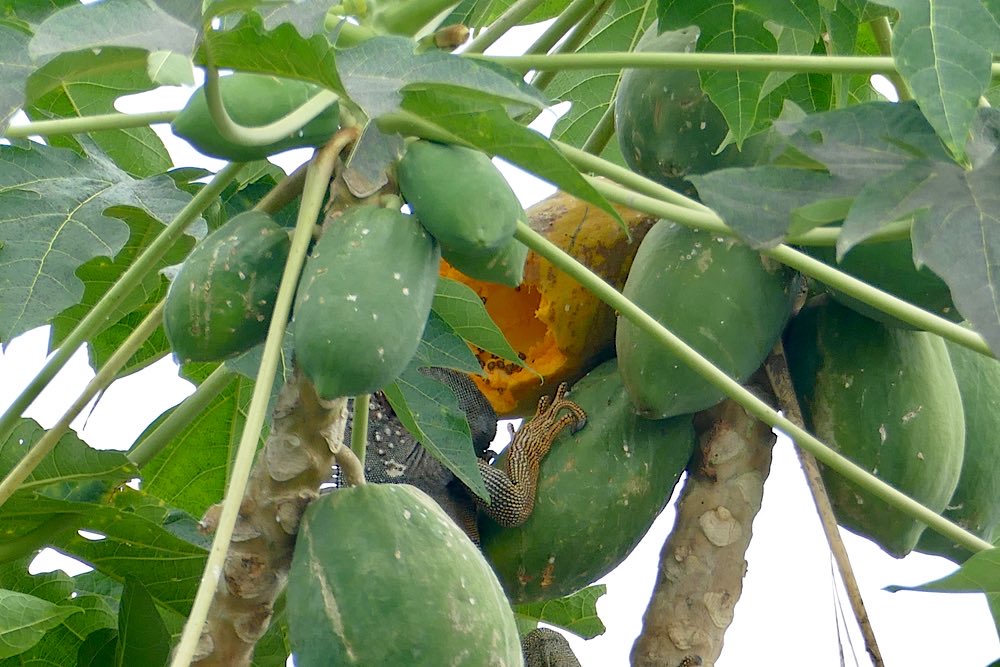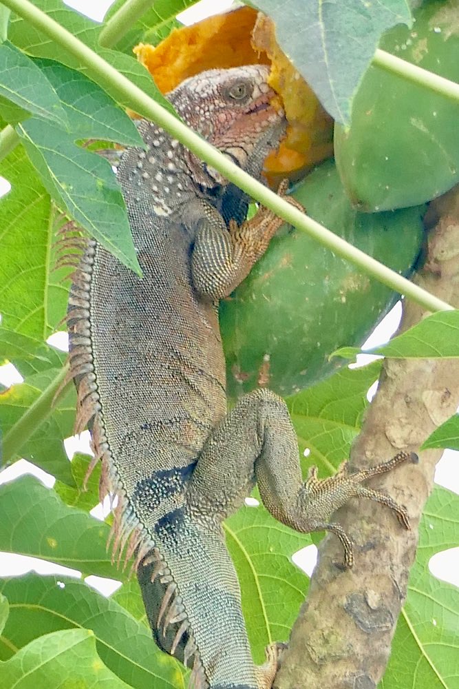 Für das nächste Foto richtete ich die Kamera auf die bereits offene Frucht, fokussierte und drückte ab. Als ich mir das Foto dann anschaute, war ich einigermaßen überrascht, dass kein Tukan im Bild war, wohl aber etwas anderes, aber schaut selbst in meiner Foto-nicht-love-story 😜 Nach einem ausgiebigen Mahl entspannte sich der gefräßige Kerl noch im PapayaBaum. Der kleine Wachhund hatte mich gewähren lassen und mir keinerlei Beachtung geschenkt.