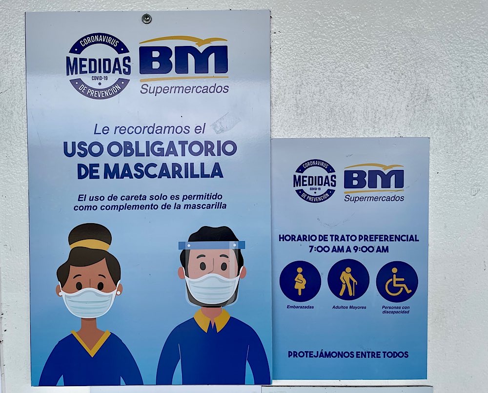 Noch etwas Allgemeines zu Costa Rica: Lebenshaltungskosten sind hier tatsächlich sehr hoch. Mein Tourguide erzählte mir, dass hier etwa gut 400 € im Monat verdient werden, davon fallen für eine Wohnung etwa 130 € an, für Internet und Fernsehen muss man auch noch mal 40-50 € rechnen, sagte er. Günstig ist hier nach meinen Erfahrungen lediglich Busfahren. Lebensmittel sind teuer, besonders Milchprodukte, speziell Joghurt. Grund dafür seien Exporte nach Panama, meinte Jairo. Grundnahrungsmittel sind hier Reis und Bohnen, schwarze und rote, eigentlich mehr schwarze. Deshalb sind die Packungen im Supermarkt auch etwas größer als bei uns. Die Hygienemaßnahmen im Supermarkt sind sehr klar und alle halten sich daran, erst Hände waschen, dann einkaufen mit Maske. Besonders gefährdete Gruppen dürfen schon morgens zwischen sieben und neun allein einkaufen, so zum Beispiel Ältere und Schwangere.
