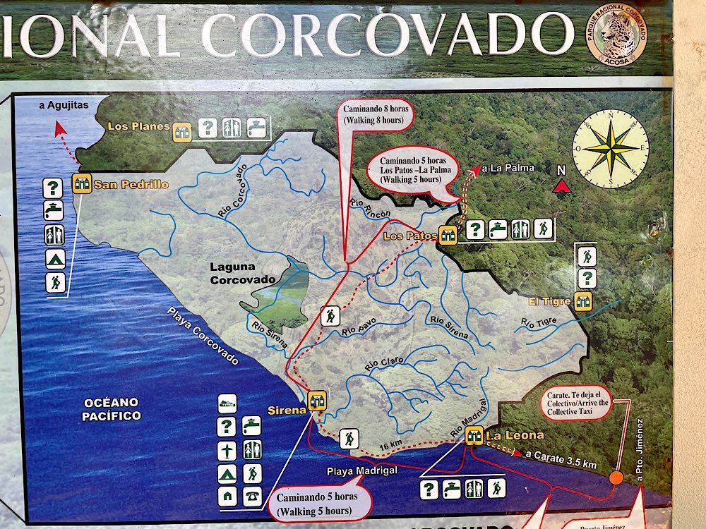 Carate Flughafen – noch war mir flau im Magen von der Fahrt Angel – mein Guide Tapirspuren am Strand Corcovado – Übersicht Mono Araña – die größte Affenart im Park war mal ein Wal🐋 Tapir Pumafährte Dragonfly Das Boot nach Drake holt uns sb