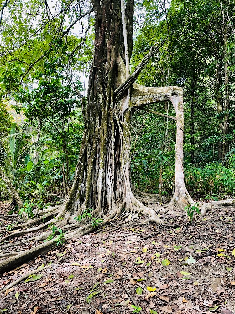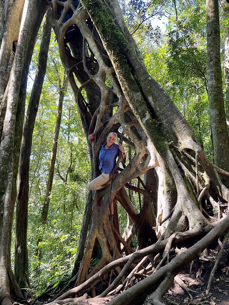 Ein besonderes Highlight wartete nach dem Mittagessen noch im Wald auf uns. Zwei auf bezaubernde Weise in einander gewachsene Bäume (Ficus tree).