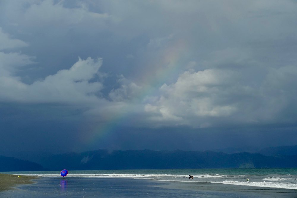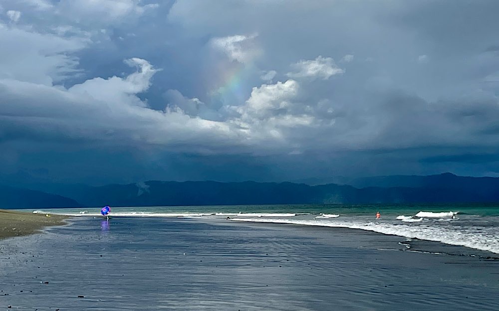 Hier mal wieder ein Update, viel Neues ist nicht passiert, wie auch, ich lebe immer noch am schönsten Strand der Welt, aber nicht mehr lange, bald geht es weiter, aber dazu später. Bei den Fotos gibt es zugegebenermaßen eine Häufung an Strand- und Sonnenuntergangsbildern, die Sonnenuntergänge sind aber auch einfach zu schön und mein absolutes Lieblingsbild ist der ganze Regenbogen. Da ist übrigens noch ein kleiner schwarzer Punkt, das ist ein Surfer, der Sohn der Familie, der ist richtig gut und Surfen ist eigentlich sein Hauptlebensinhalt.