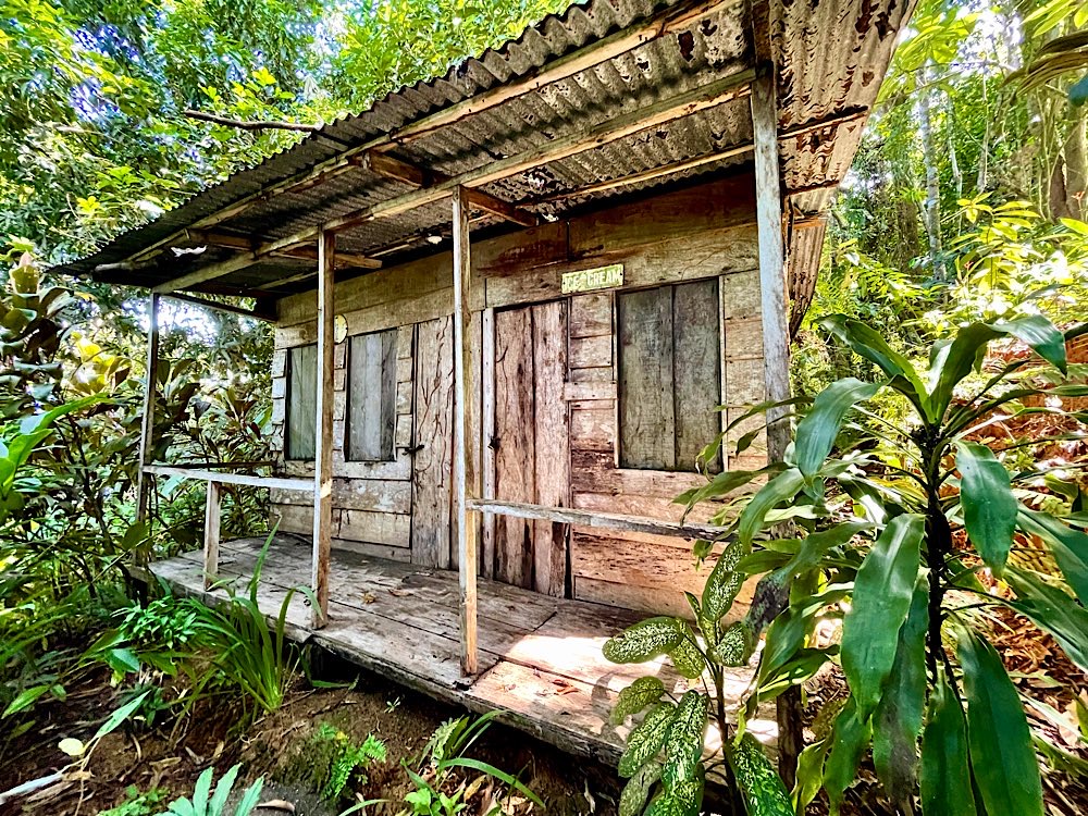 Weiter ging dann auch die Plackerei auf den angeblich 19km, die dann aber doch knapp 30 wurden: Wäre mir nicht klar gewesen, dass Jammern und Aufgeben keine Option ist, hätte ich vermutlich genau das gemacht. Als dann auch noch kurz vor Einbruch der Dunkelheit der Guide lustig einen Weg im Wald suchte, um den Fluss kurz vor der Ranger Station zu überqueren und das mit meiner Maps.Me-App gar nicht zusammen passte, wurde ich doch etwas unwillig und nervös.Kürzen wir das ganze hier mal ab, um 18:00 Uhr waren wir schließlich am Ziel, völlig fertig, ich wollte nur noch duschen und schlafen, aber das ging auch nicht so richtig, alles tat weh. Schließlich dann duschen, essen, Bett. Um 20:00 Uhr geht das Licht am Schlafsaal aus. 70 Betten gäbe es, wegen Corona sind es nur 35 – 20 davon waren belegt, alle mit Mückennetzen und Laken gut ausgestattet.