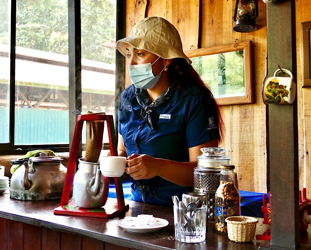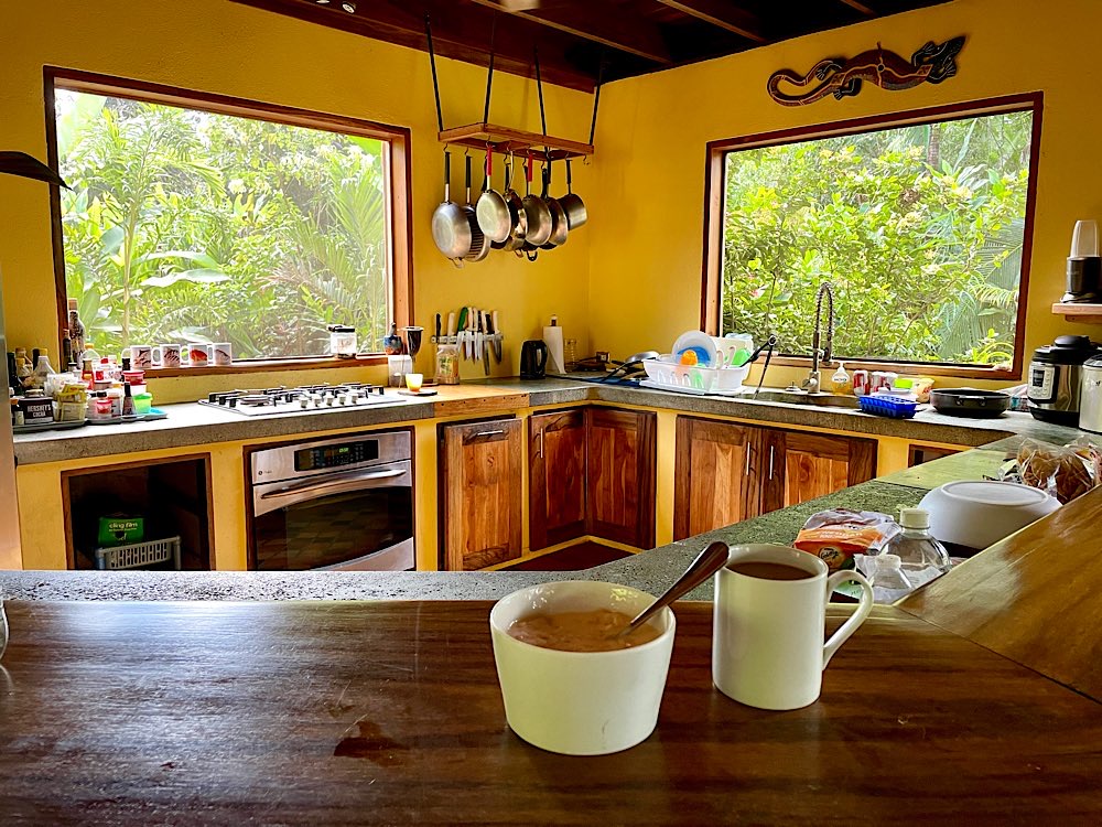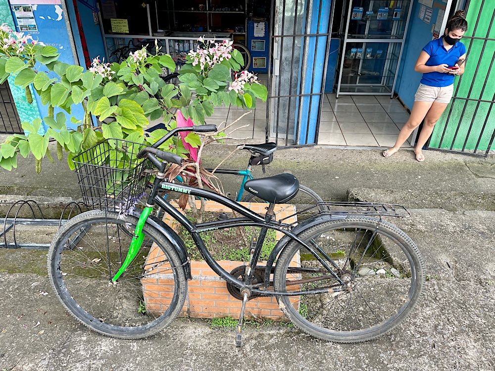 Fährüberfahrt 1 Minute zum Strand mein neues Zuhause 🏡 Kaffee am 1. Morgen Gallo Pinto – will ich lernen zuzubereiten Schlicht, aber fährt… Fahrradladen Supermarkt mit Covid-Prozedere Puerto Jiménez