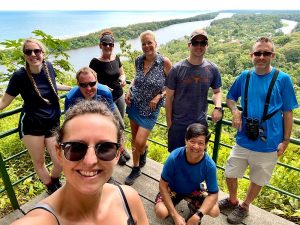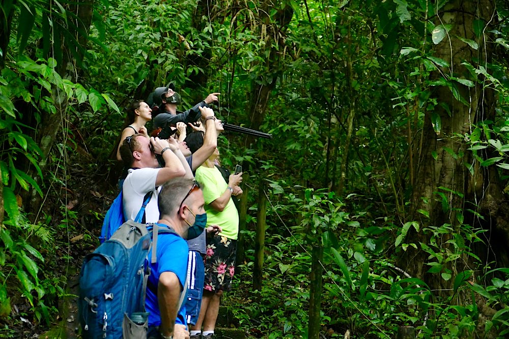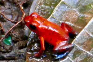 Am Nachmittag gab es dann noch eine kleine Wanderung auf die höchste Erhebung im Umkreis des Ortes mit wunderschönem Blick über den Regenwald. Ein paar Giftfrösche, circa ein bis 2 cm groß, gab es auch noch zu sehen, andere wohl gemerkt als an der Pazifikküste, die waren nämlich nicht giftig, auch wenn sie optisch sehr ähnlich erscheinen.