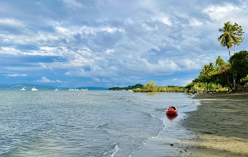 Von Serena aus ging es dann mit dem Boot weiter Drake – sehr beschaulich hier, „muy basico“ formulierte eine Verkäuferin im Supermarkt das Angebot hier. Das kann ich so bestätigen. Aber ich bin ja auch nicht zum Shoppen hier, ein bisschen Erholung tut Not, so ganz viel machen kann man eh nicht, es ist zu heiß. So folgte ich dem Rat eines etwas bekifft wirkenden Einheimischen heute Morgen. Er meinte: gar nichts machen, einfach nur hinsehen und gucken was hier So passiert. Habe ich gemacht. Einfach nur am Strand sitzen und aufs Meer schauen, war schön.