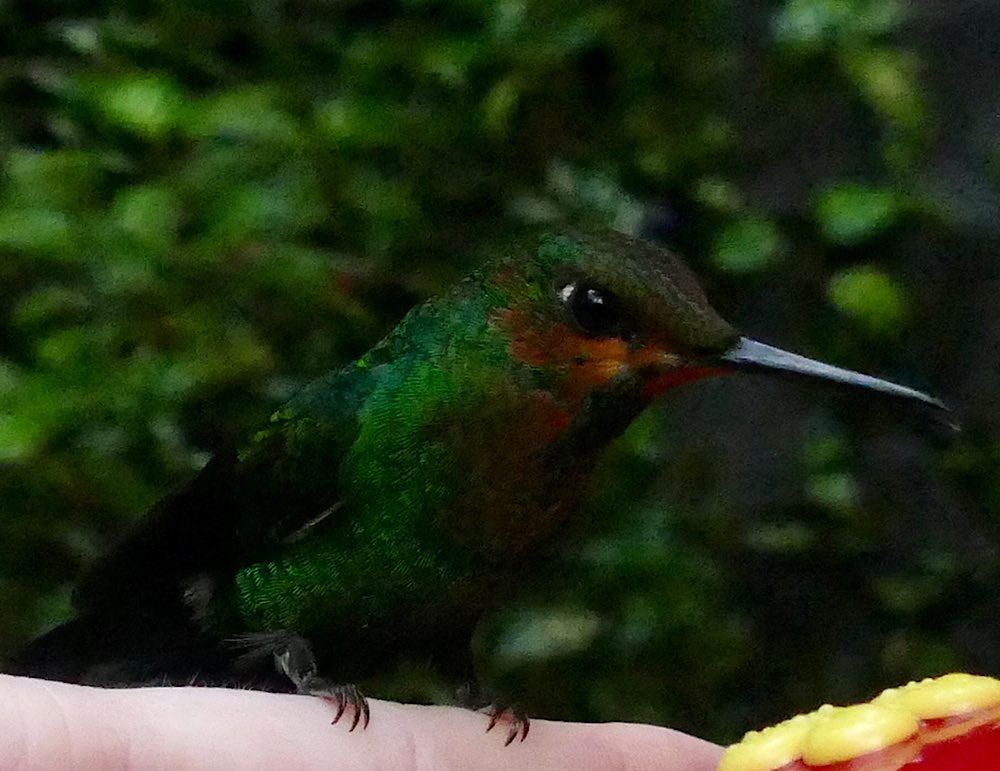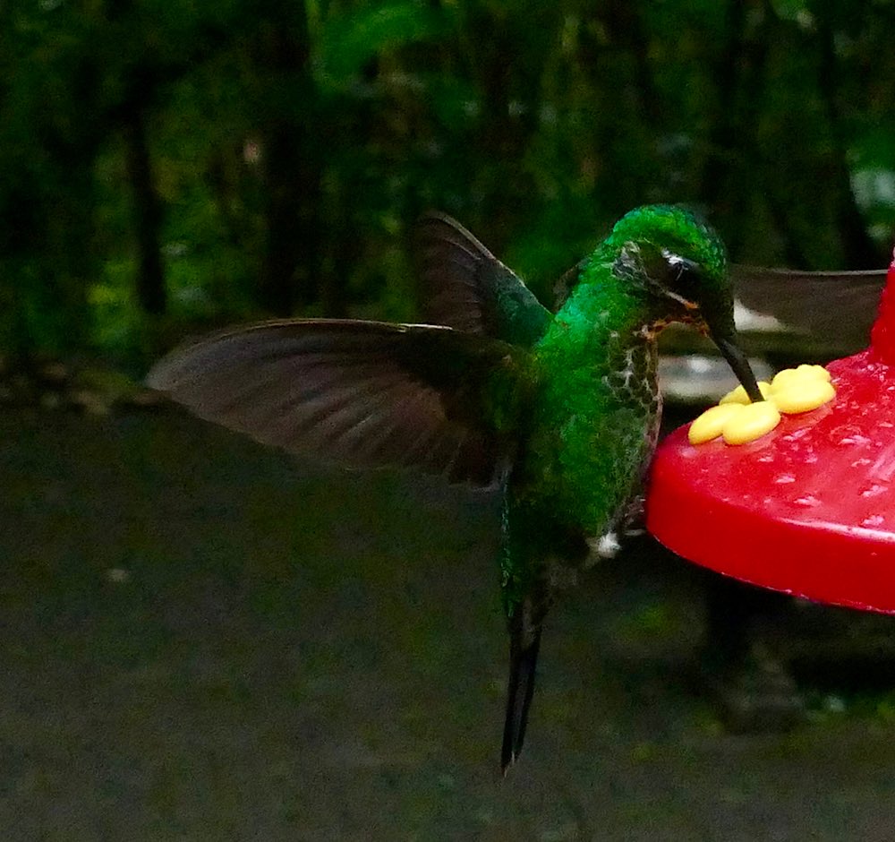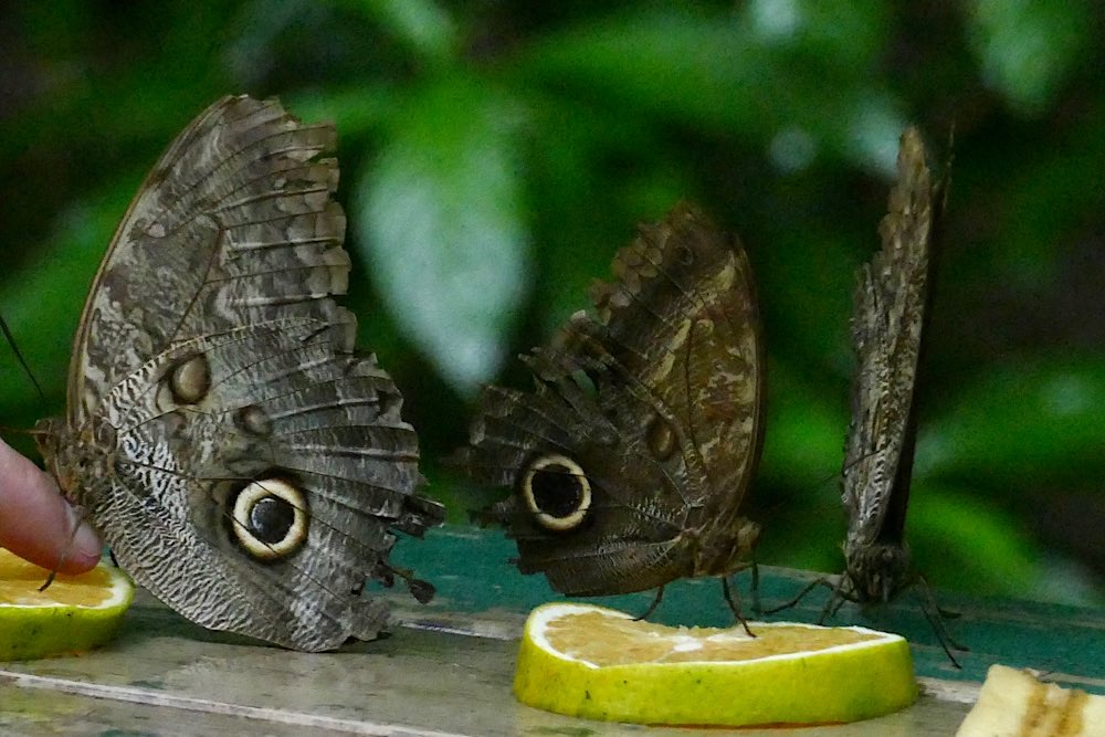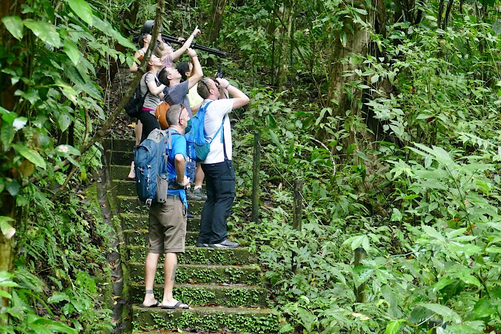 Im Ecocentro Danaus wird einem die Natur- und Vogelbeobachtung mit Fotos leicht gemacht. Fruchtstücke wurden ausgelegt und wir saßen, teils im Regen, überdacht und konnten zuschauen, wie das Obst die Vögel erfolgreich anlockte. Zum Ende des Tages dann auch endlich Tukane – Eine ganz andere Art als auf der Osahalbinsel und brav dicht vor unseren Augen, sehr fotogen! Einen Specht tatsächlich mal beim Hämmern ins Holz zu beobachten fand ich auch sehr beeindruckend.