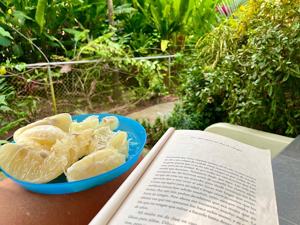 In der kanadischen Familie, bei der ich bier wohne, bin ich als „workawayerin“ für das Homeschooling zuständig und kümmere mich zurzeit um die Tochter der Familie, die nach kanadischem Curriculum Klasse 5 beschult werden soll. Also mache ich das, was ich schon immer gemacht habe- die Steigerung von ein- und mehrsilbigen Adjektiven erklären – nur eben nicht einer ganzen Klasse. Ist schon eine interessante Erfahrung, für Homeschooling zuständig zu sein und bietet – bei eben nur einem Kind – die Möglichkeit, sehr flexibel auf aktuelle Stimmungen und Gegebenheiten einzugehen und kreativer und spontaner als im normalen Schulalltag zu agieren und zu reagieren. Die ersten zwei Tage waren jedenfalls gut und ich lerne Neues über Kanada und „herbivores, carnivores, omnivores“. Wettertechnisch kann man sich auf der Osa- Halbinsel auf zweierlei verlassen – es ist warm und es wird bestimmt auch bald mal wieder regnen – das dann aber ordentlich. Das Ende der Regenzeit ist eben nicht das Ende des Regens😉. Am Wochenende soll es mit Spanisch lernen vorangehen – mal schauen, ob es wirklich klappt – facebook macht ja viele Dinge möglich…