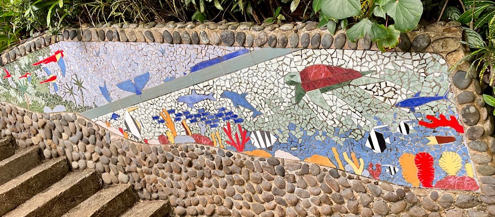 Künstlerisch angehauchtes Chaos auf dem Weg zum Wasserfall Rote Bananen Catarata de La Fortuna 500 Stufen abwärts, dann kommt man zum Fall Impressionen aus dem Schmetterlingsgarten