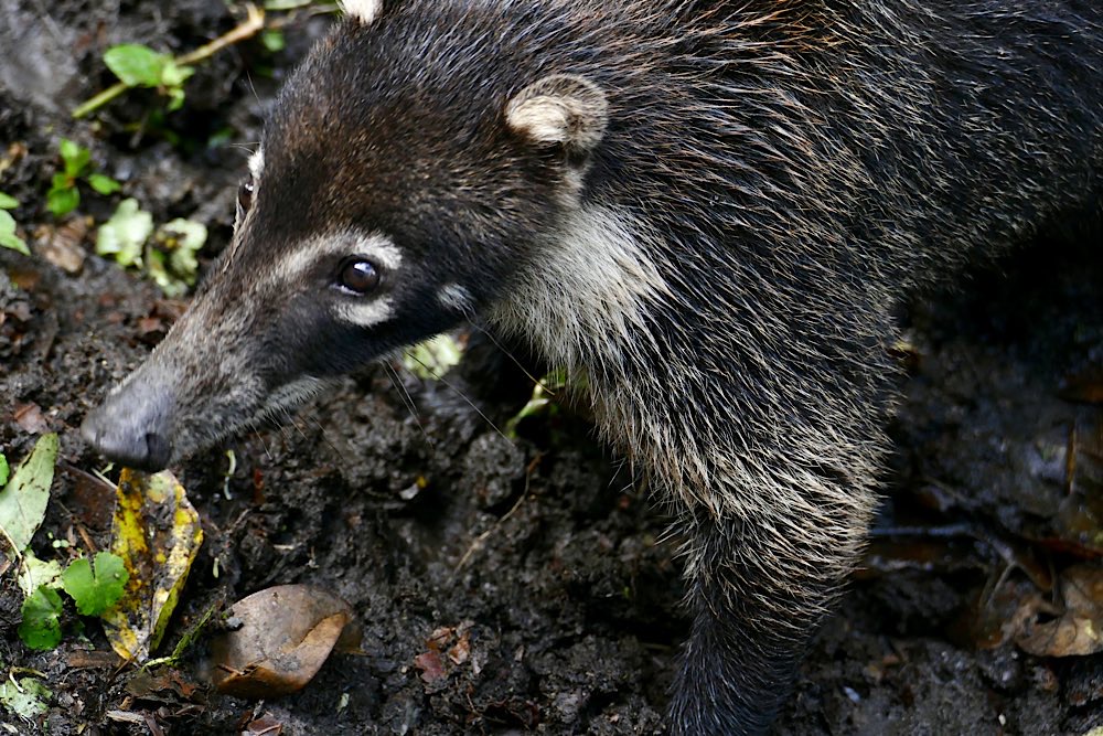 Gleich eine ganze Horde Weißrüssel-Nasenbären bekamen wir dann unverhofft auf der Rückfahrt vom Ökozentrum zu sehen. Gleich am Straßenrand, bestimmt 15-20 Tiere, die in der Erde wühlten und bei geöffneter Tür neugierig in unseren Bus hinaufschauten. Das hatten wir so nicht erwartet.