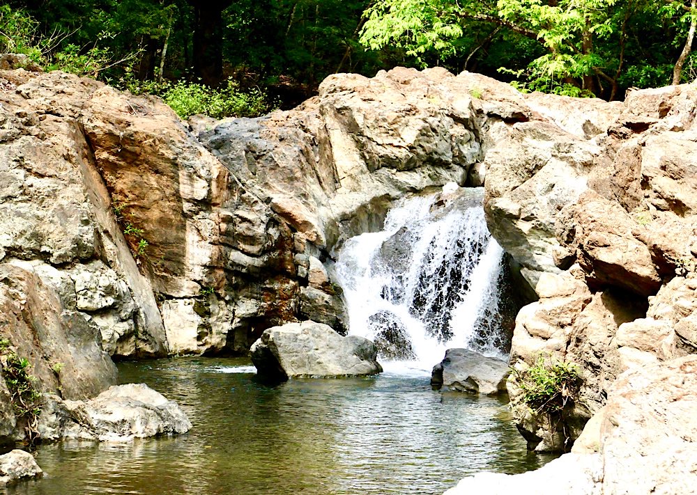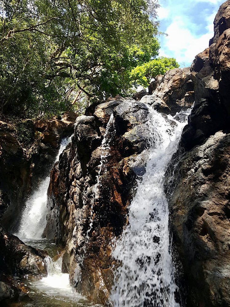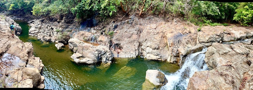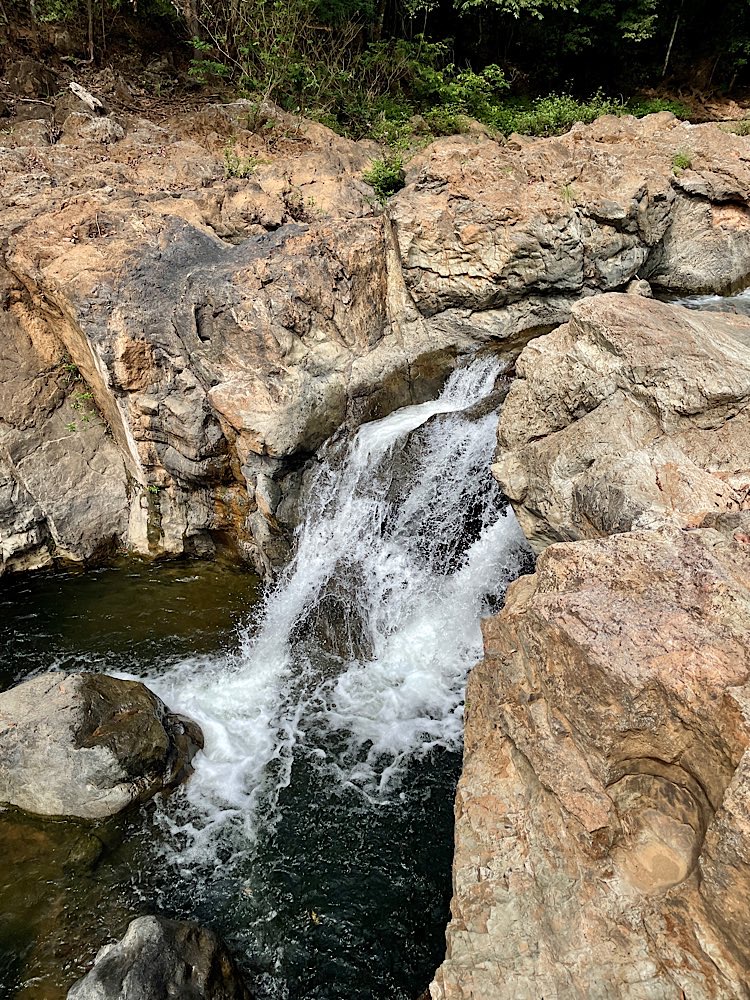 Eine recht entspannte Wanderung führte uns in ein felsiges Gebiet, in dem mehrere Wasserfälle und Wasserlöcher zu finden waren – Rückenmassage für lau, ein bisschen Wellness im Felsen🪨, schön war’s!