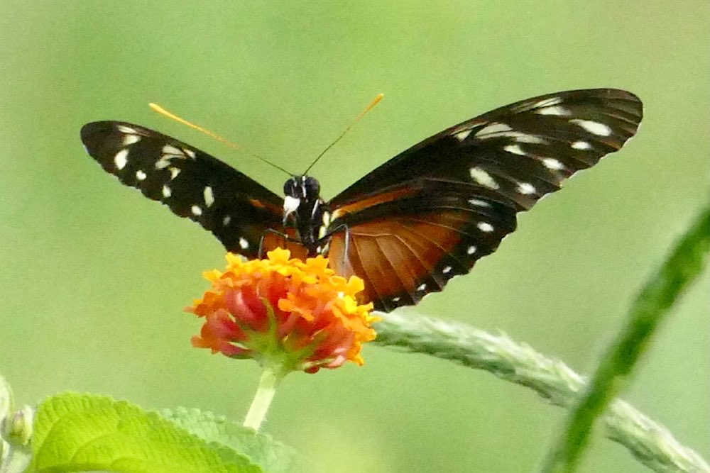 Nach einem Mittagessen im Ort wollten die meisten zum Ziplining. Ich nicht, ich hab das schon zweimal gemacht, in Honduras war es großartig, das zweite Mal weniger und die Aktion nach einem fröhlichen Abend fand ich nicht so passend für mich. Also brauchte es eine Alternative. Ich wollte in einen Schmetterlingsgarten. Nach meinen online Recherchen war nicht ganz klar ob er offen hatte oder nicht. Es sah mir so aus, als würde er schon um 14:30 Uhr schließen. Also bestellte ich mir ein Taxi im Supermarkt, um die verbleibende Stunde noch zu nutzen. Das hat dann leider alles nicht so richtig geklappt. Der Taxista wollte 2500 Colones, mein Guide hatte mir mit auf den Weg gegeben, wieviel für welchen Streckenabschnitt jeweils der höchste Preis wäre. Also nachverhandelt, 2000 Colones. Abgeladen am Schmetterlingspark musste ich feststellen, dass dieser zu hatte, ganz, wegen Pandemie. Dann im selben Taxi wieder zurück in den Ort beziehungsweise zum Hotel. Dort ein weiterer Disput um Preise – die Rezeptionistin des kleinen Hotels unterstützte mich auch mit einem Telefonat, egal, der Typ blieb unangenehm und hat seine Kohle bekommen. Es scheint hier zwei Taxi-Unternehmen zu geben, das höchste legale der roten Taxis und ein anderes, das wohl vorwiegend von den Einheimischen genutzt wird, eher halb legal, der Taxifahrer nannte sie „piratas“.