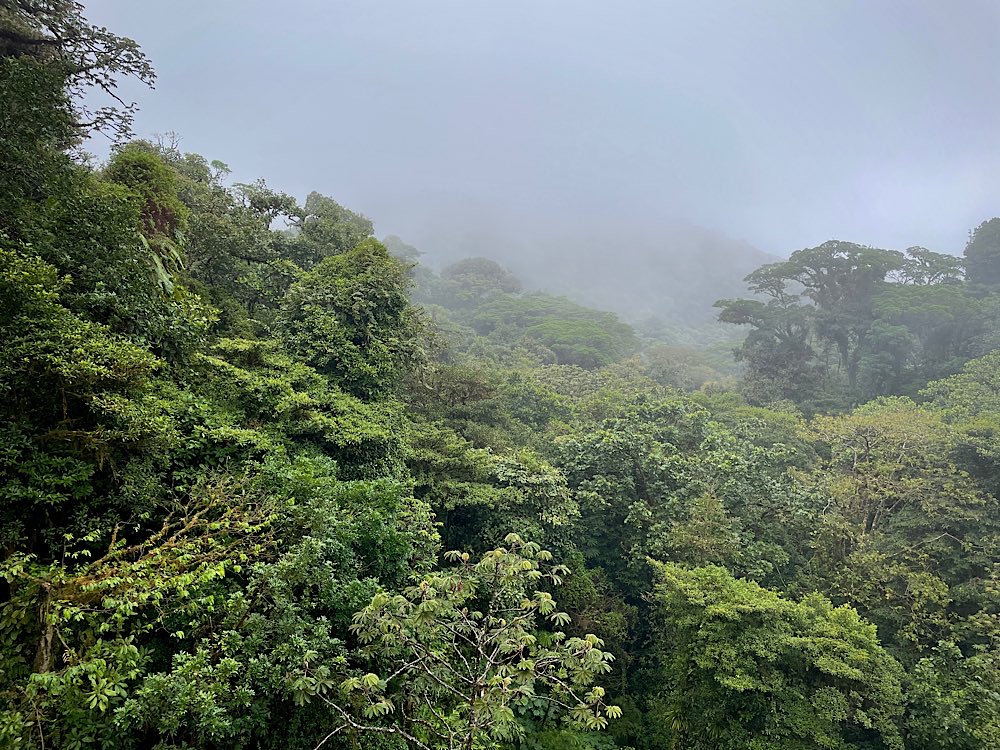 Am nächsten Morgen ging es dann weiter nach Monteverde, weg von der Pazifikküste und hinauf in die Berge in den Nebelwald. Hier ist es deutlich kühler, windig, mit Regen muss man immer rechnen und nachts ist es recht kalt.