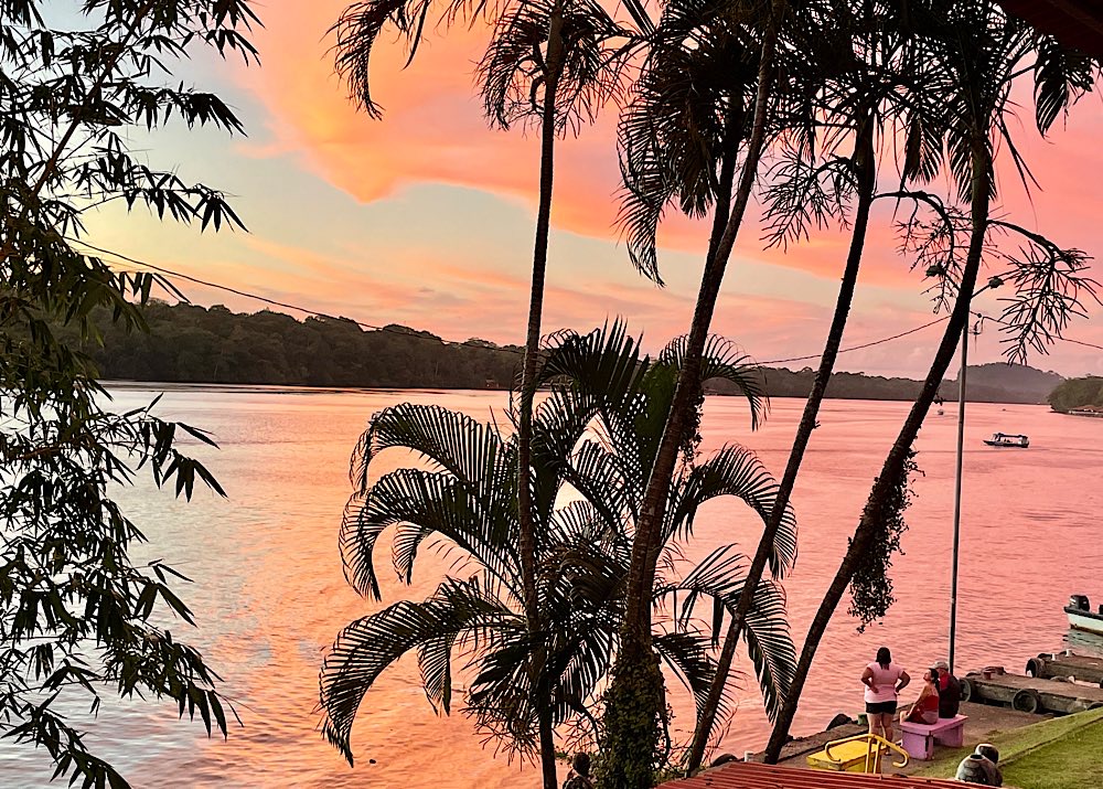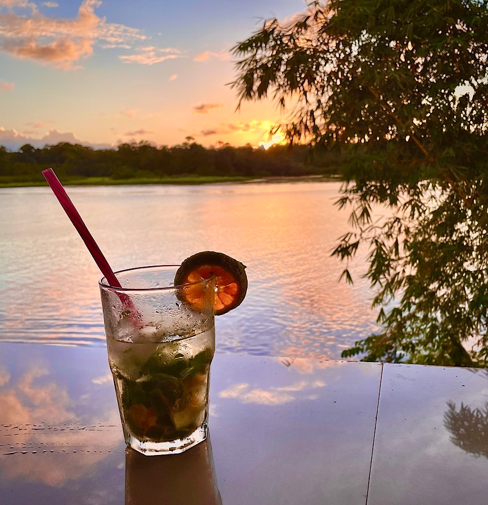 Am Nachmittag ging es dann mit dem Boot rüber nach Tortuguero auf die andere Flussseite, ein wenig den Ort erkunden und zu guter letzt bei einem Cocktail in die Sonne sinken sehen. Es könnte einen im Leben härter treffen😀 🍹
