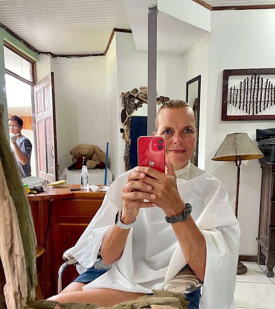 Gestern habe ich den Tag für einen Friseurbesuch genutzt – in Deutschland geht ja nix zur Zeit! Wilmer hat das alles gut hinbekommen mit der Farbe und dem Schneiden und ist ein netter Typ, der es als Kolumbianer in Sámara nicht so ganz leicht hat. Die Leute hier in Costa Rica sind zwar angenehm und entspannt, aber Vorbehalte gegenüber bestimmten Nationen und der machismo können schon nervig sein.