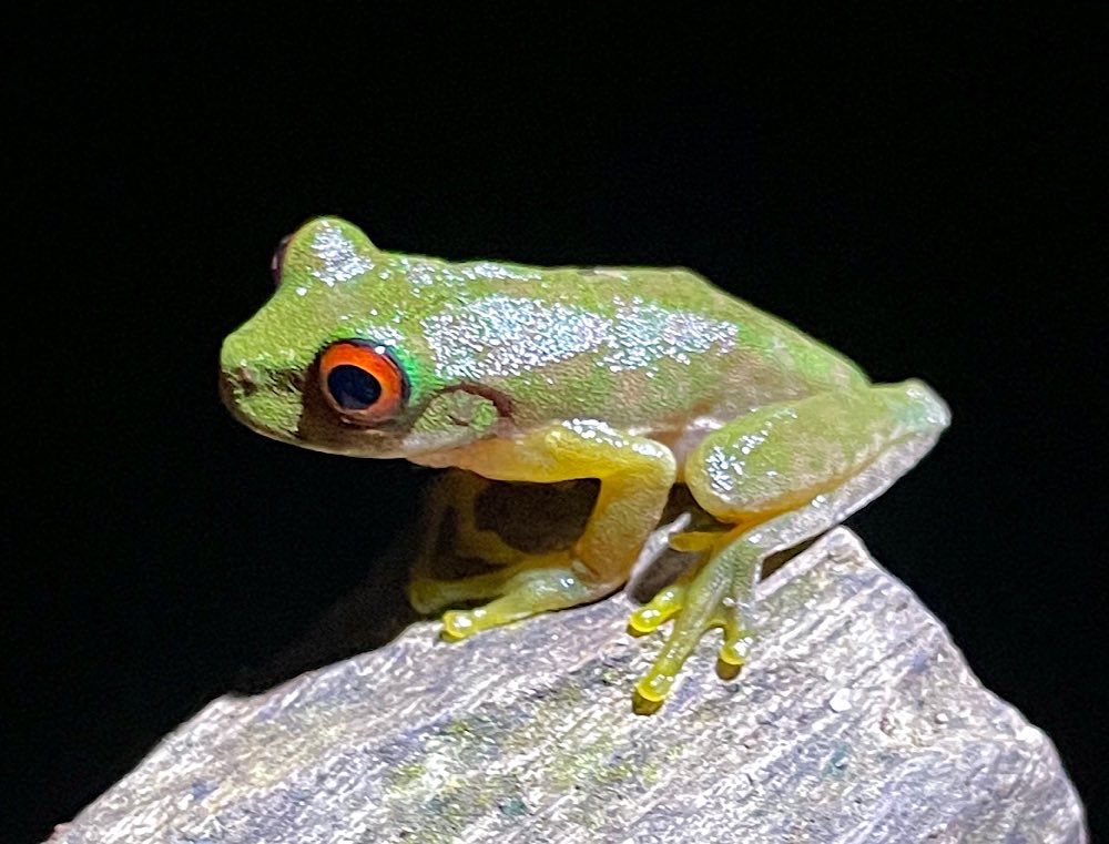 Für den Abend war eine geführte Nachtwanderung angesetzt. Das lief auch alles nach Plan. Relativ viele Gruppen unterwegs auf dem Gelände, trotzdem ein bisschen was gesehen. Und endlich den ersten kleinen Frosch, auf den ich schon lange gewartet hatte. 🐸
